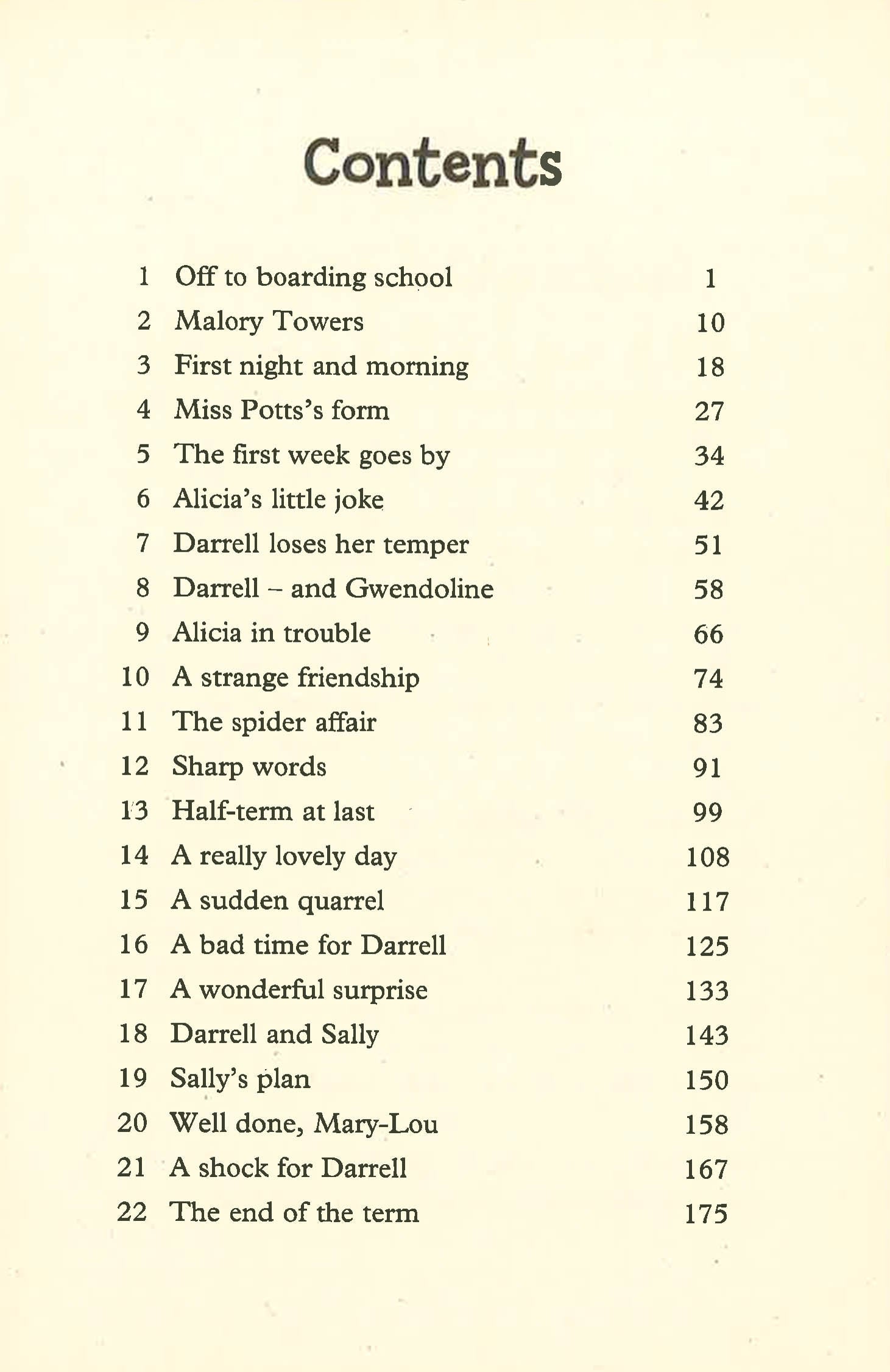 Darrell and her friends grow together as they share their school days. There are new students to induct, sporting matches to be won, tempers to control and tricks to play on teachers. This work presents stories about life at boarding school as readers follow the girls' lives through 6 years at Malory Towers.