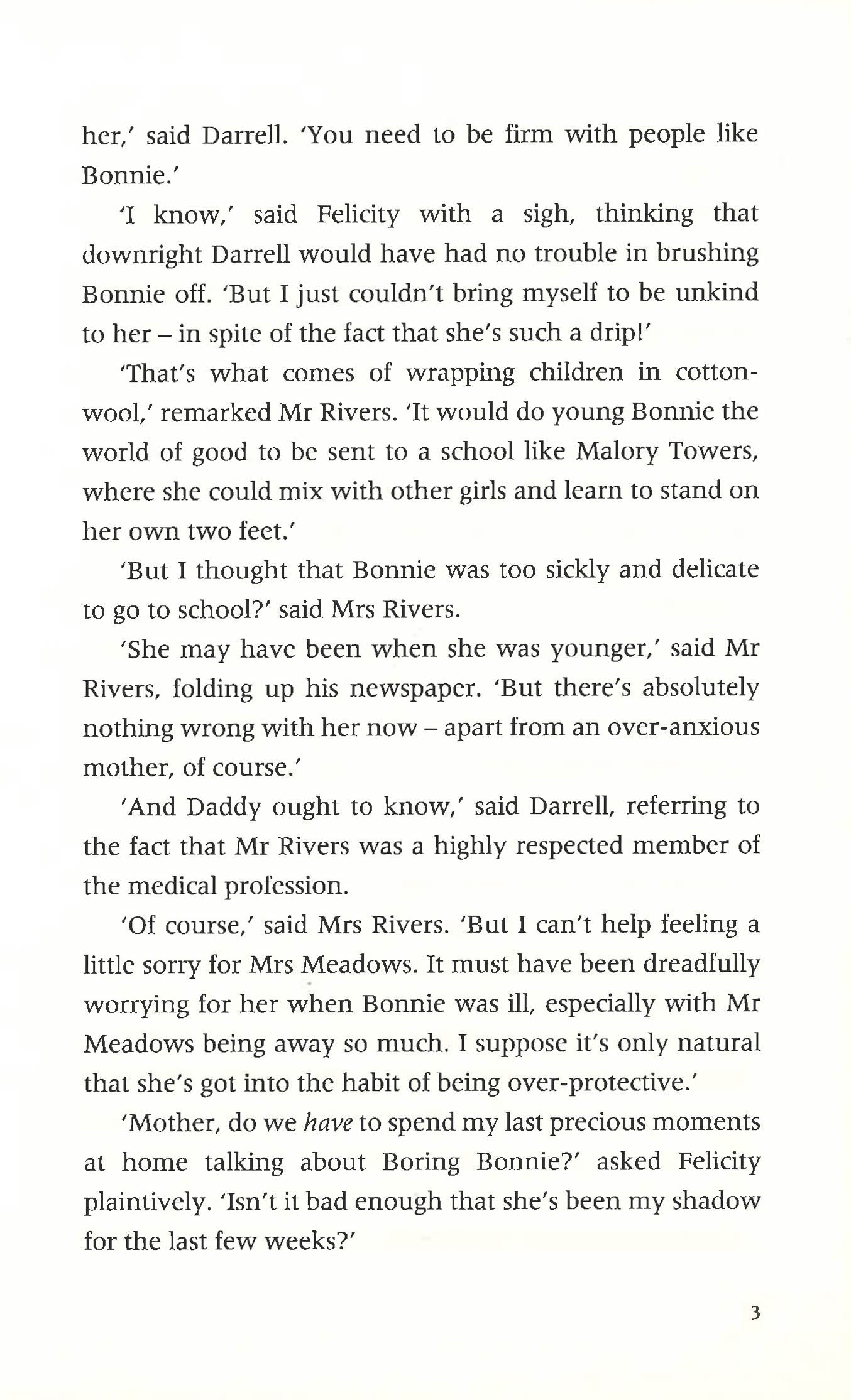 For new girl Darrell Rivers, there are friends to be made, pranks to be played and fun to be had at Malory Towers in Enid Blyton's best-loved boarding school series.In book seven, Darrell has left Malory Towers and her sister Felicity takes over as head girl. But the other girls are determined to cause trouble. Will Freddie and June ever stop playing tricks? And what's Amy's strange family secret?Expect more drama at Malory Towers!Between 1946 and 1951, Enid Blyton wrote six novels set at Malory Towers. Books 7-12 are authorised sequels of the series written by Pamela Cox in 2009 and focus on the adventures of Felicity Rivers, Susan Blake, and June Johns. This edition is unillustrated.