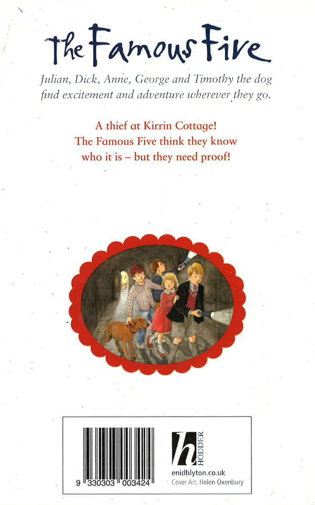 Julian, Dick, George and Timothy the dog find excitement and adventure wherever they go. A thief at Kirrin Cottage! The Famous Fuve think they know who it is – but they need proof!