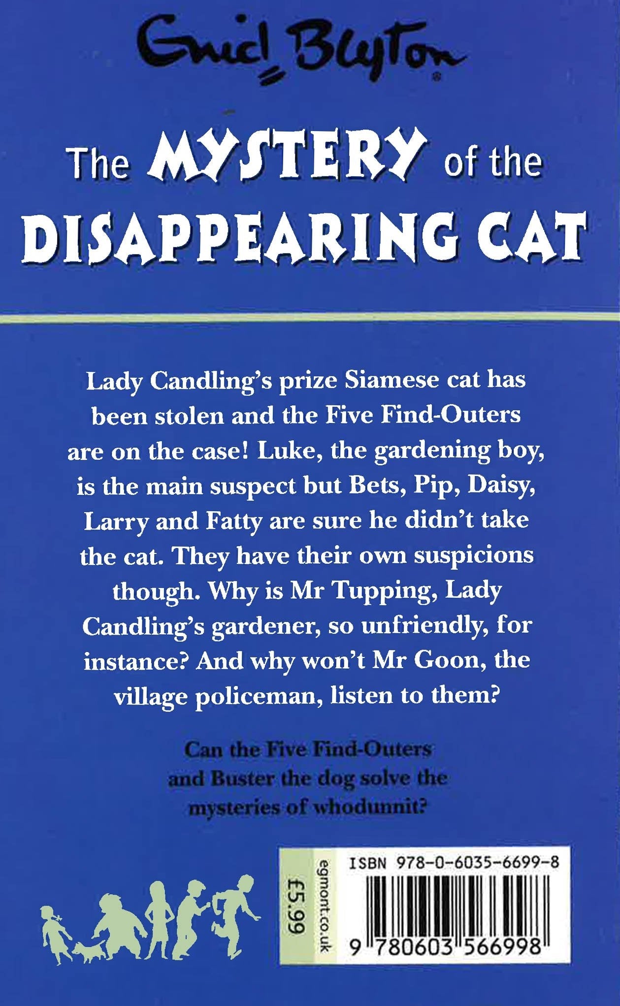 Lady Candling's prize Siamese cat has been stolen and the Five Find Outers are on the case! Luke, the gardening boy, is the main suspect but Bets, Pip, Daisy, Larry and Fatty are sure he didn't take the cat.
