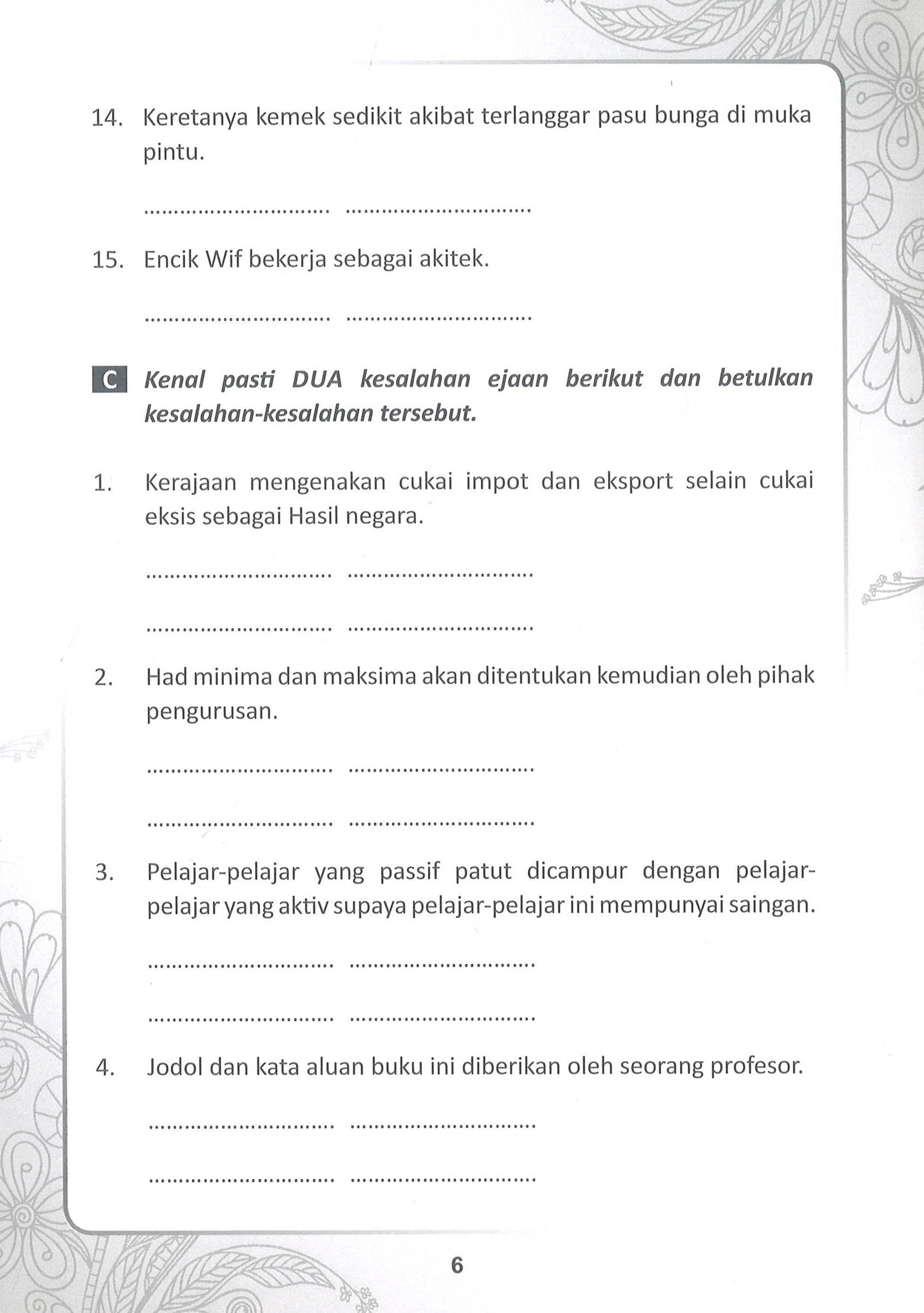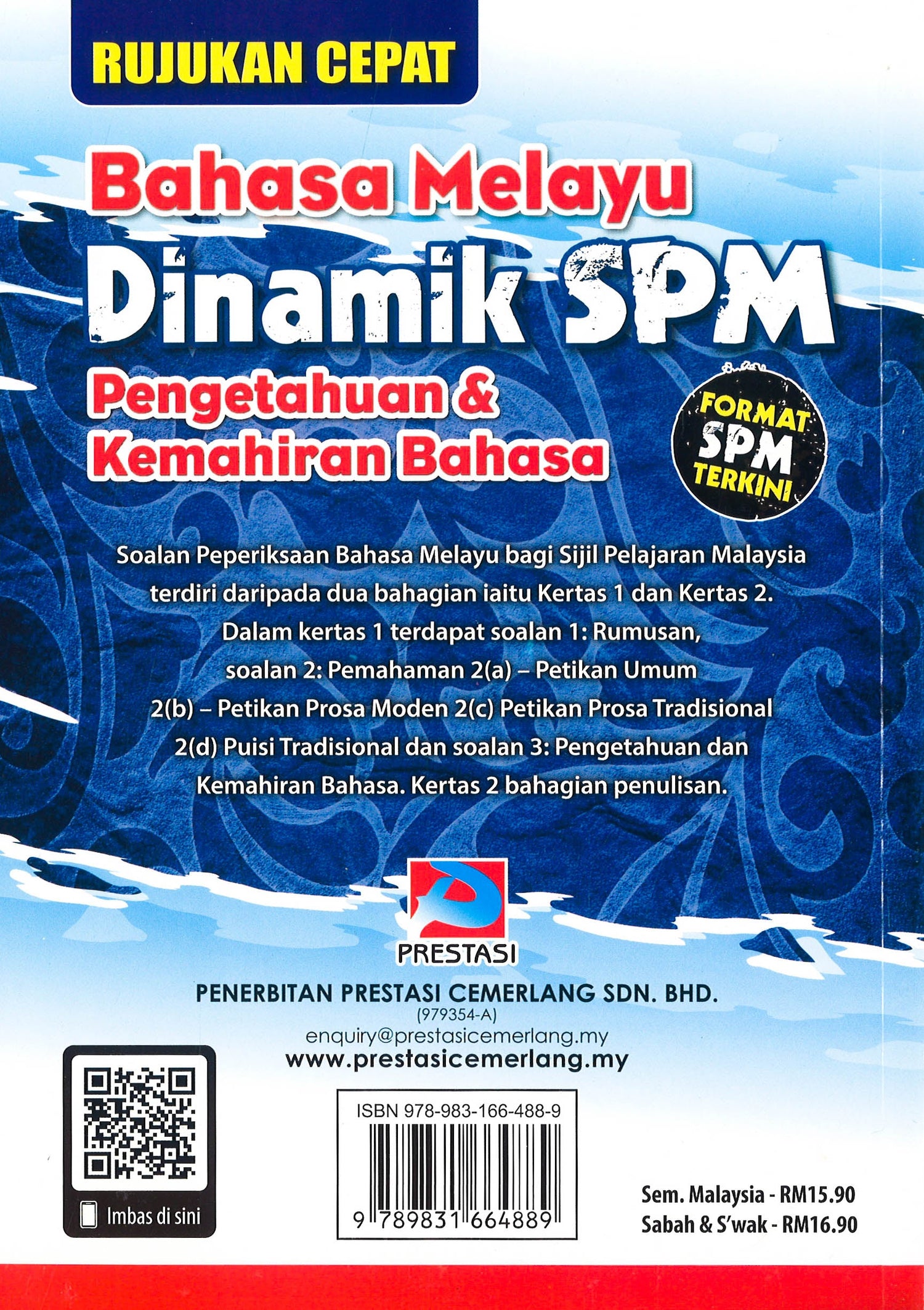 - Berdasarkan format KBAT, KBSM dan KSSM terkini - Ditulis khas untuk pelajar Tingkatan 4 & 5 yang akan menduduki ujian SPM - Menolong pelajar menjawab soalan 3 kertas 1 ujian Bahasa Melayu - Pelbagai tajuk dan fakta yang relevan dan menarik - Terdapat latihan praktis yang mencabar dan membuka minda - Ditulis oleh penulis pakar yang berpengalaman