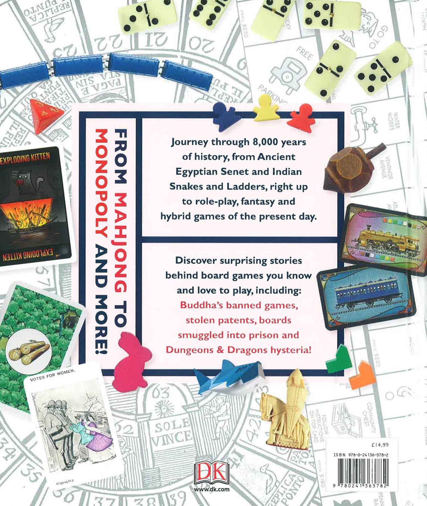 Surprising stories behind the games you know and love to play.Journey through 8,000 years of history, from Ancient Egyptian Senet and Indian Snakes and Ladders, right up to role-play, fantasy and hybrid games of the present day.More than 100 games are explored chronologically, from the most ancient to the most modern. Every chapter is full of insightful anecdotes exploring everything from design and acquisition to game play and legacy. Discover tales of Buddha's banned games, stolen patents, boards smuggled into prison, and Dungeons & Dragons hysteria. Roll six to start, pass go, and learn more about your favourite board games, from Mahjong to Monopoly and more!