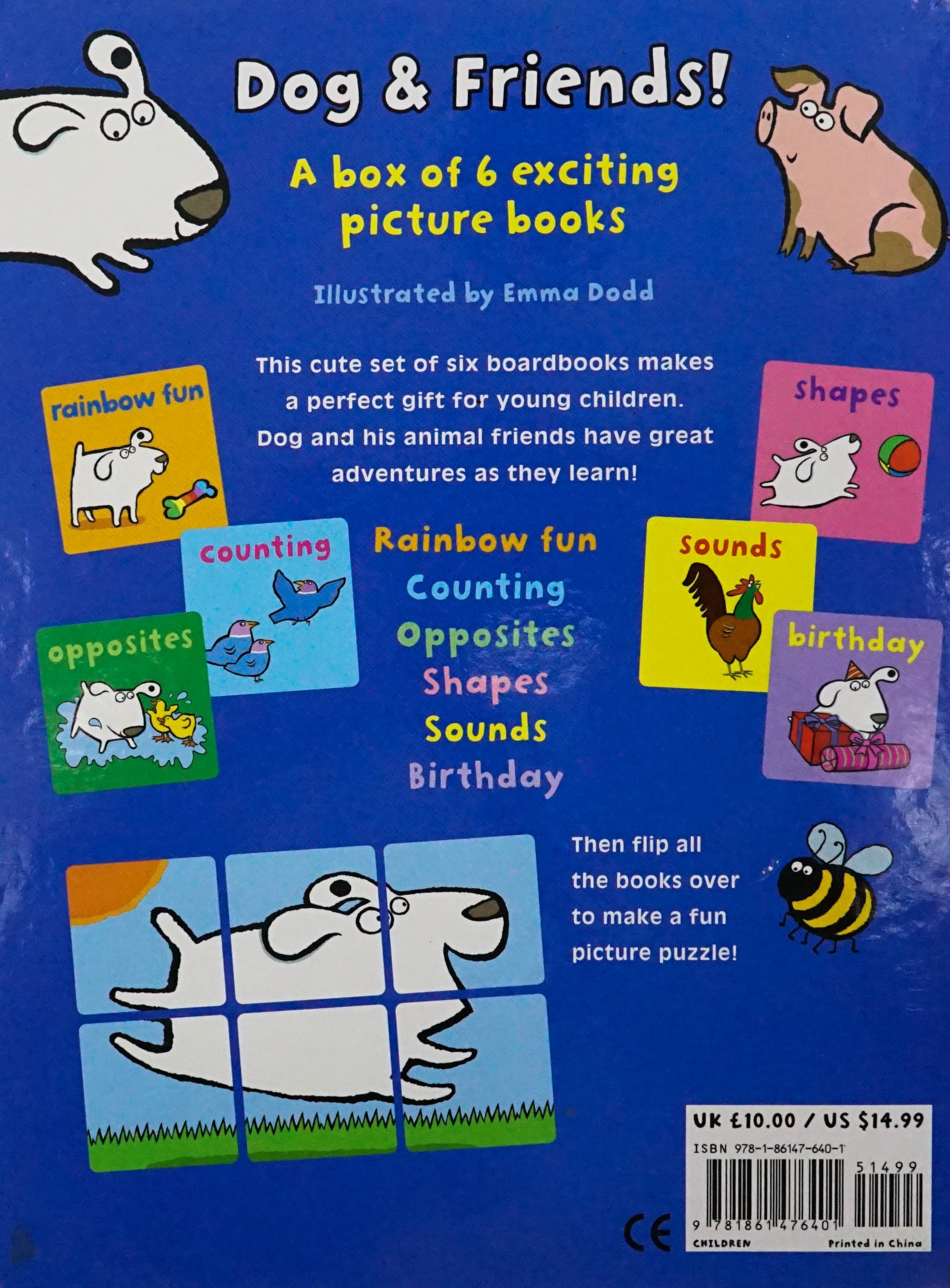 This cute six-book set makes a perfect gift for little ones. In each sturdy volume, Dog and his fellow creatures enjoy a fun adventure - from acquiring splashes of pink ice cream, orange juice and other shades, to looking at the triangular sails of boats along the shore. Count three cows, six sheep, seven pigs, and more - and read about all the different sounds they make. The bees are the opposite of that, though - they are quiet, allowing Dog to take a well-earned nap. Sleep well, Dog! The books are carefully planned to help children make the important connection between words and their meanings.