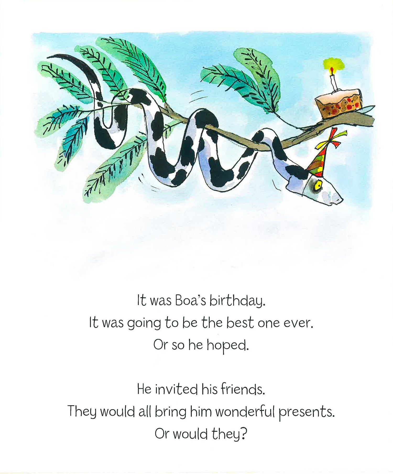 It is Boa's birthday. It is going to be the best one ever. Or so he hopes. He invites his friends round. They will all bring him wonderful presents. . . .or will they?