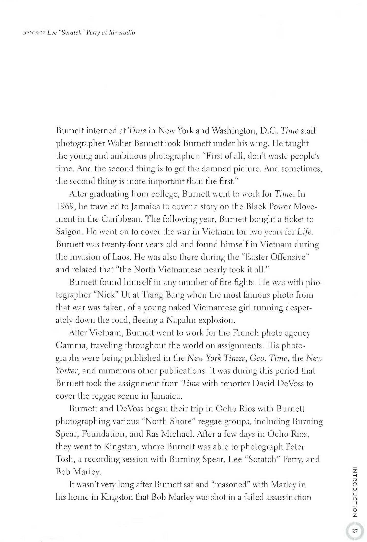 On assignment in Jamaica for Time magazine in 1976, David Burnett photographed Bob Marley at his Tuff Gong home in Kingston, Jamaica, and then on the start of the seminal Exodus tour. Capturing the legend at an exceptional moment in time, Burnett's work intersects with both the zenith of Marley's career and the traumatic upheaval of his flight from Jamaica after an attempt on his life. For any reggae lover or music history buff, Bob Marley offers a matchless glimpse into the legend's life at home.