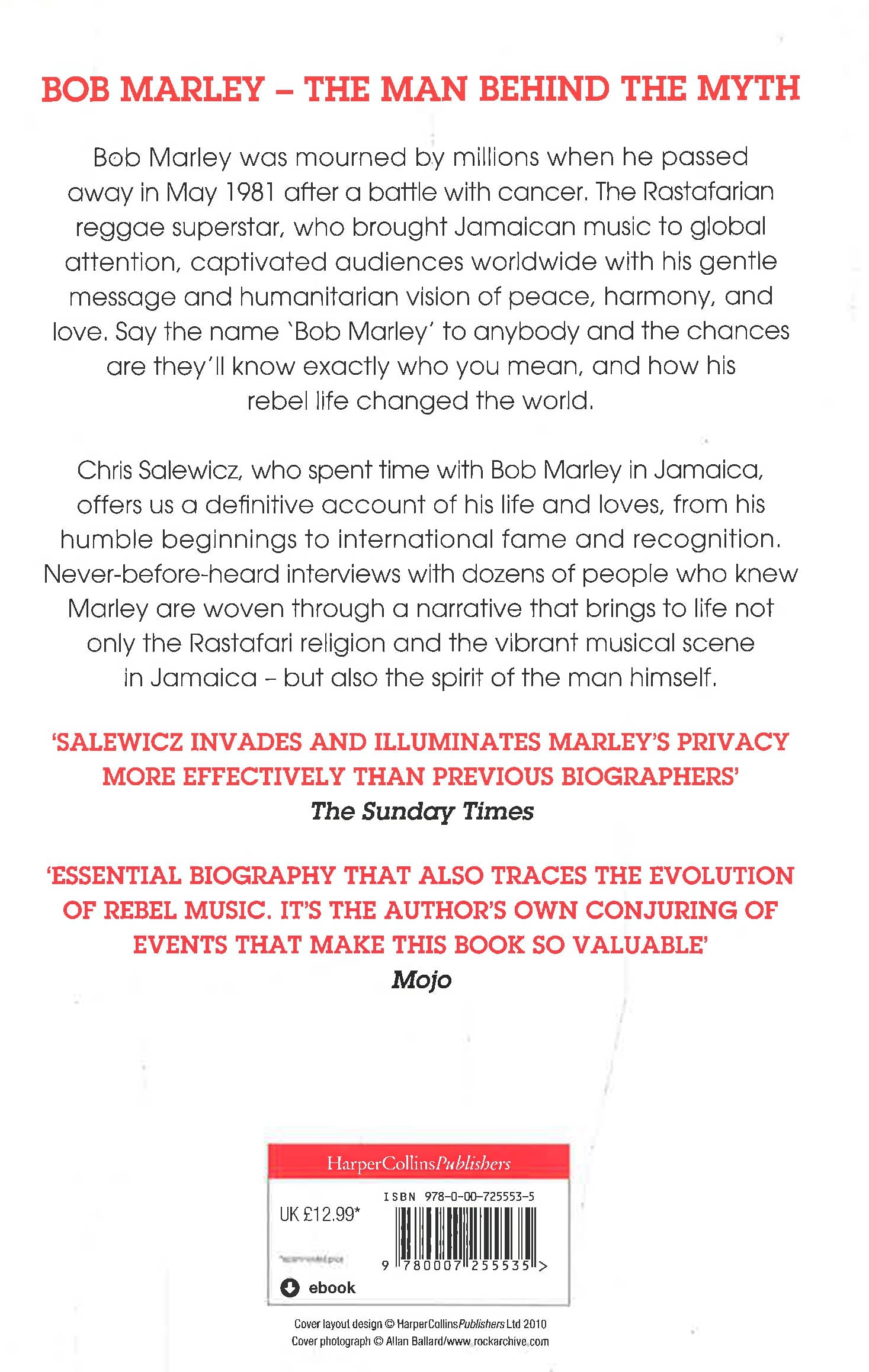 On May 11, 1981, a little after 11.30 in the morning, Bob Marley died. The man who introduced reggae to a worldwide audience, in his own lifetime he had already become a hero figure in the classic mythological sense. From immensely humble beginnings and with talent and religious belief his only weapons, the Jamaican recording artist applied himself with unstinting perseverance to spreading his prophetic musical message. And he had achieved it: only a year earlier, Bob Marley and The Wailers' tour of Europe had seen them perform to the largest audiences a musical act had up to that point experienced. Record sales of Marley's albums before his death were spectacular; in the years since his death they have become phenomenal, as each new generation discovers afresh the remarkable power of his music.