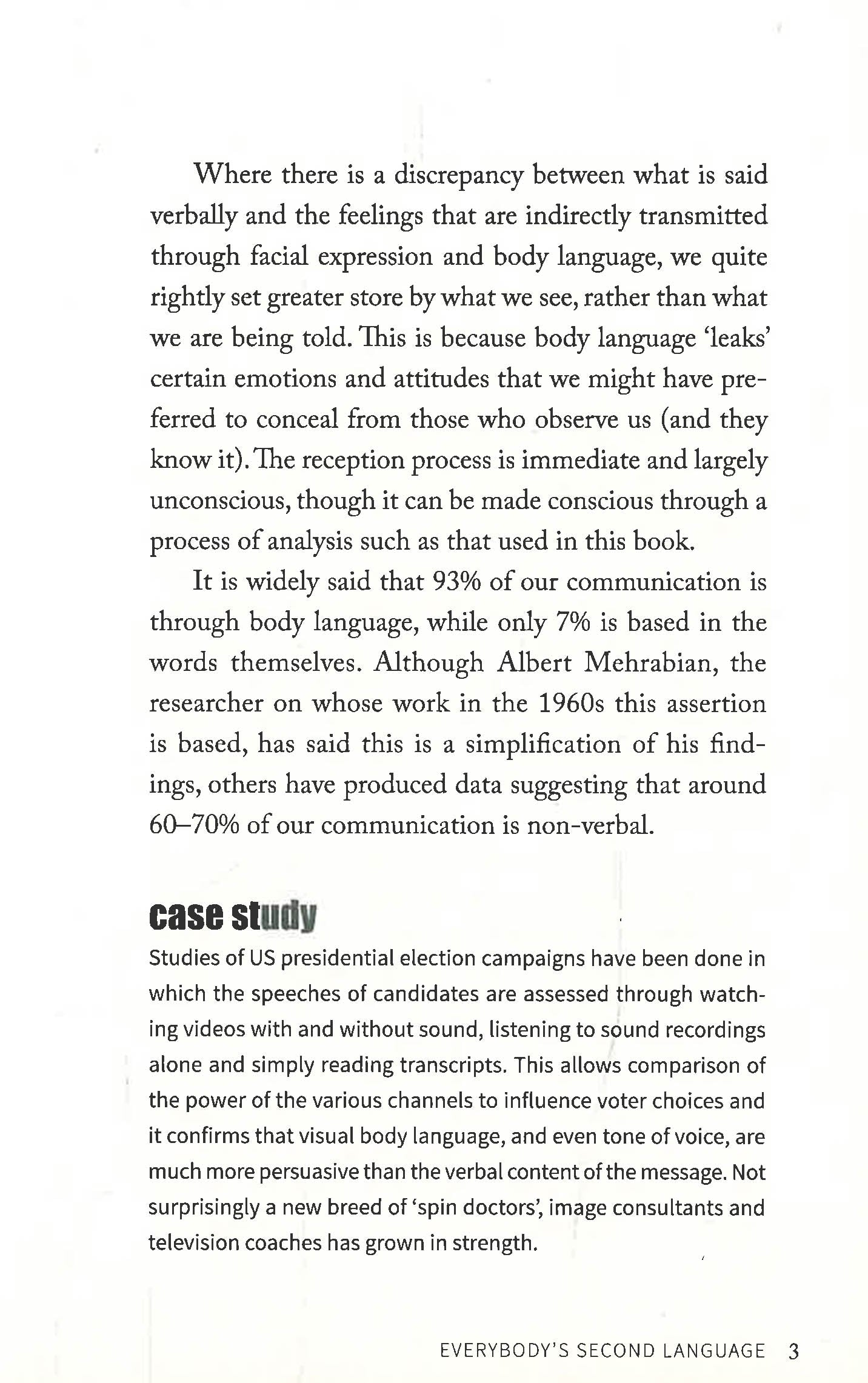 From interviews to dates, the boardroom to the stage, being aware of the non-verbal signals you, and others, send can have a huge impact on your relationships and success in life - for better or worse. This fun and friendly guide will show you how to 'read' the body language of others, and how to project the right signals, so you can manage the impression you give to others. Full of real-world and pop-cultural examples, practical tips and strategies, and underpinned by principles from psychological and social experiments, you'll learn how to use and interpret non-verbal messages to put your best face, and body, forwards.