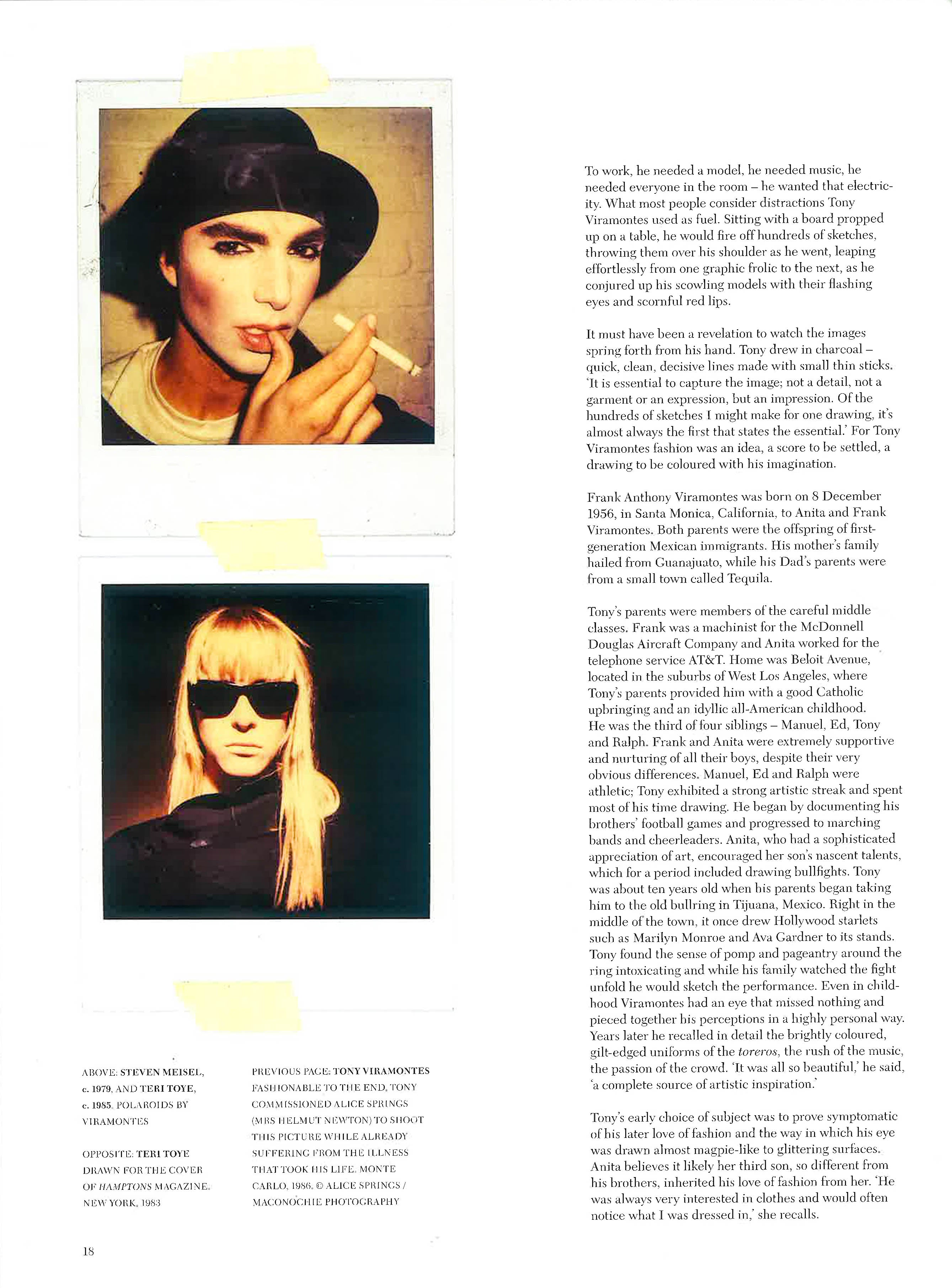 When Tony Viramontes' work appeared in the late 1970s, his hard and direct style of drawing was a marked contrast to the prevailing soft-pastel school of fashion illustration. He scored immediate success, rapidly acquiring the kind of prestigious editorial commissions normally given to photographers, from Lei , Per Lui in Italy, Vogue in the USA, The Face in Britain, and Le Monde and Le Figaro in France. This beautiful hardback book brings together an extensive collection of his work, featuring striking images of smouldering and smoky-eyed men and women who vibrate with New Wave energy. Viramontes worked with some of the most celebrated names in fashion including Yves Saint Laurent, Valentino, Chanel, Claude Montana and Christian Dior. His images, from the portraits of Paloma Picasso and Isabella Rossellini to the album covers he conceived for Arcadia and Janet Jackson, perfectly capture the mood of the 1980s club and fashion scene.