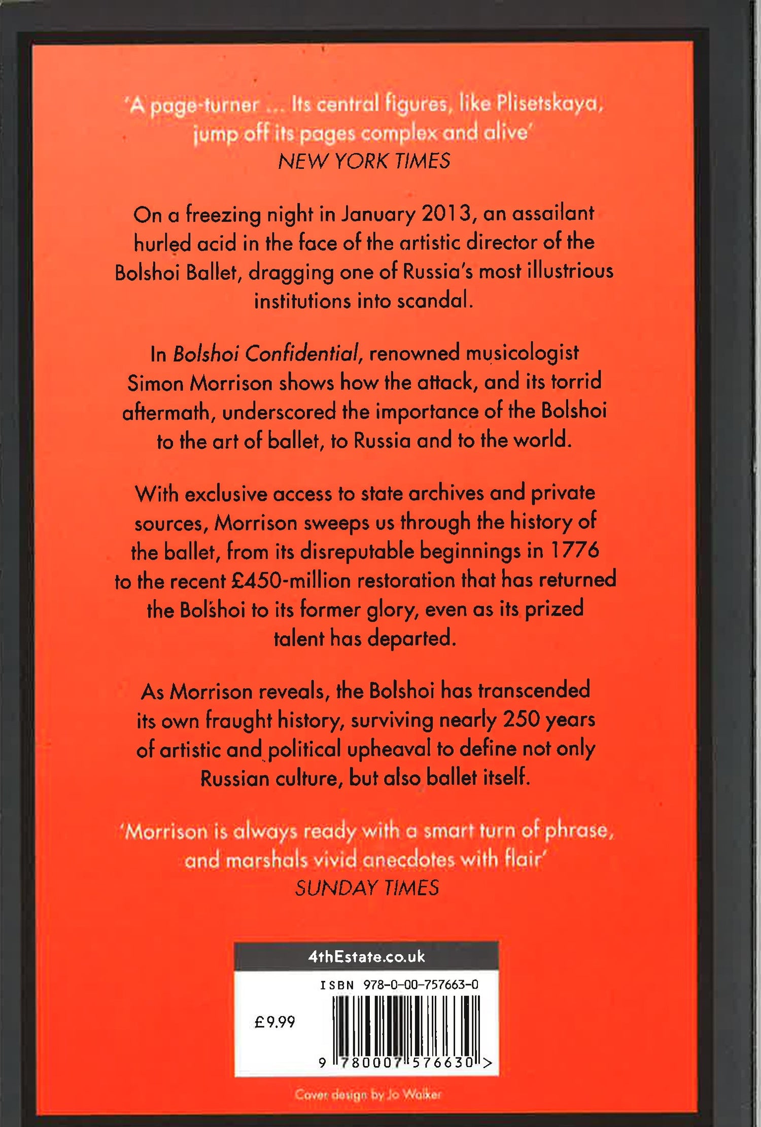 On a freezing night in January 2013, an assailant hurled acid in the face of the artistic director of the Bolshoi Ballet, dragging one of Russia's most illustrious institutions into scandal. In Bolshoi Confidential, renowned musicologist Simon Morrison shows how the attack, and its torrid aftermath, underscored the importance of the Bolshoi to the art of ballet, to Russia, and to the world. With exclusive access to state archives and private sources, Morrison sweeps us through the history of the ballet, from its disreputable beginnings in 1776 to the recent GBP450 million restoration that has returned the Bolshoi to its former glory, even as its prized talent has departed. As Morrison reveals, the Bolshoi has transcended its own fraught history, surviving 250 years of artistic and political upheaval to define not only Russian culture, but also ballet itself.