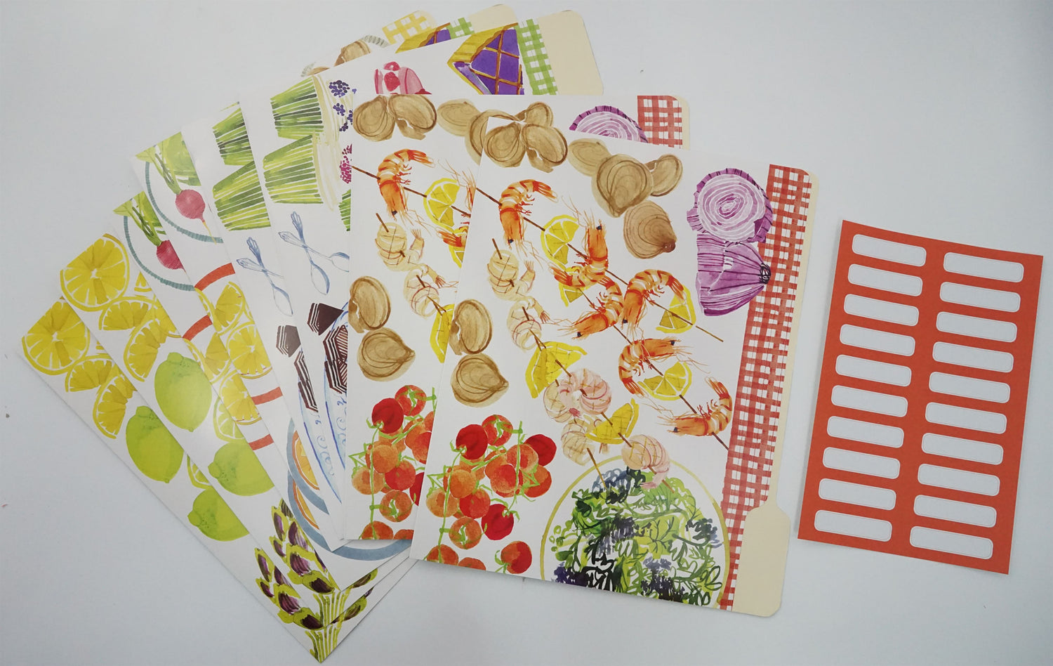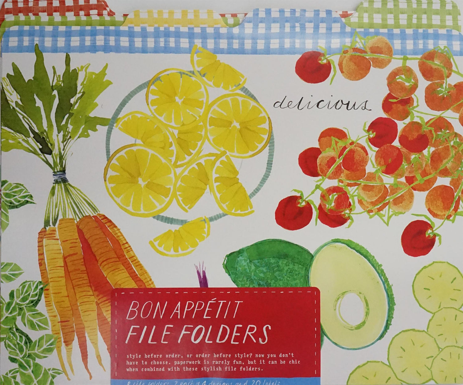 Keep your papers in order with Galison's Bon Appetit File Folders. Colourful fruits and vegetables, seafood and desserts, plus homey gingham accents, were all illustrated by Emily Robertson. The set includes 8 file folders, 2 each in 4 designs with 20 labels.