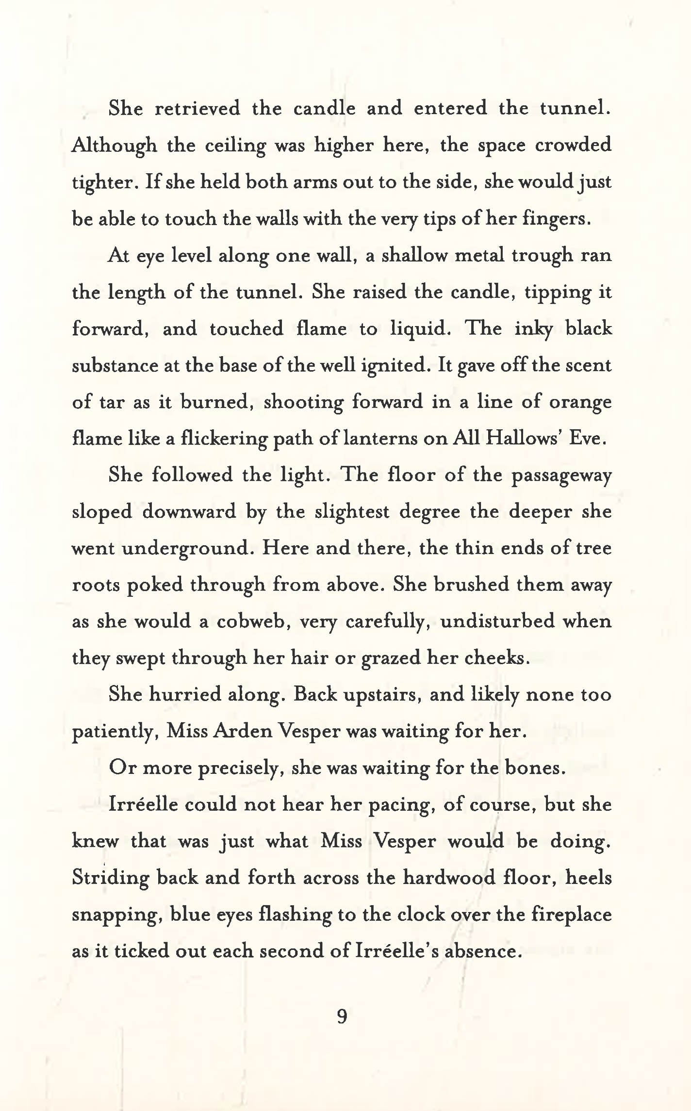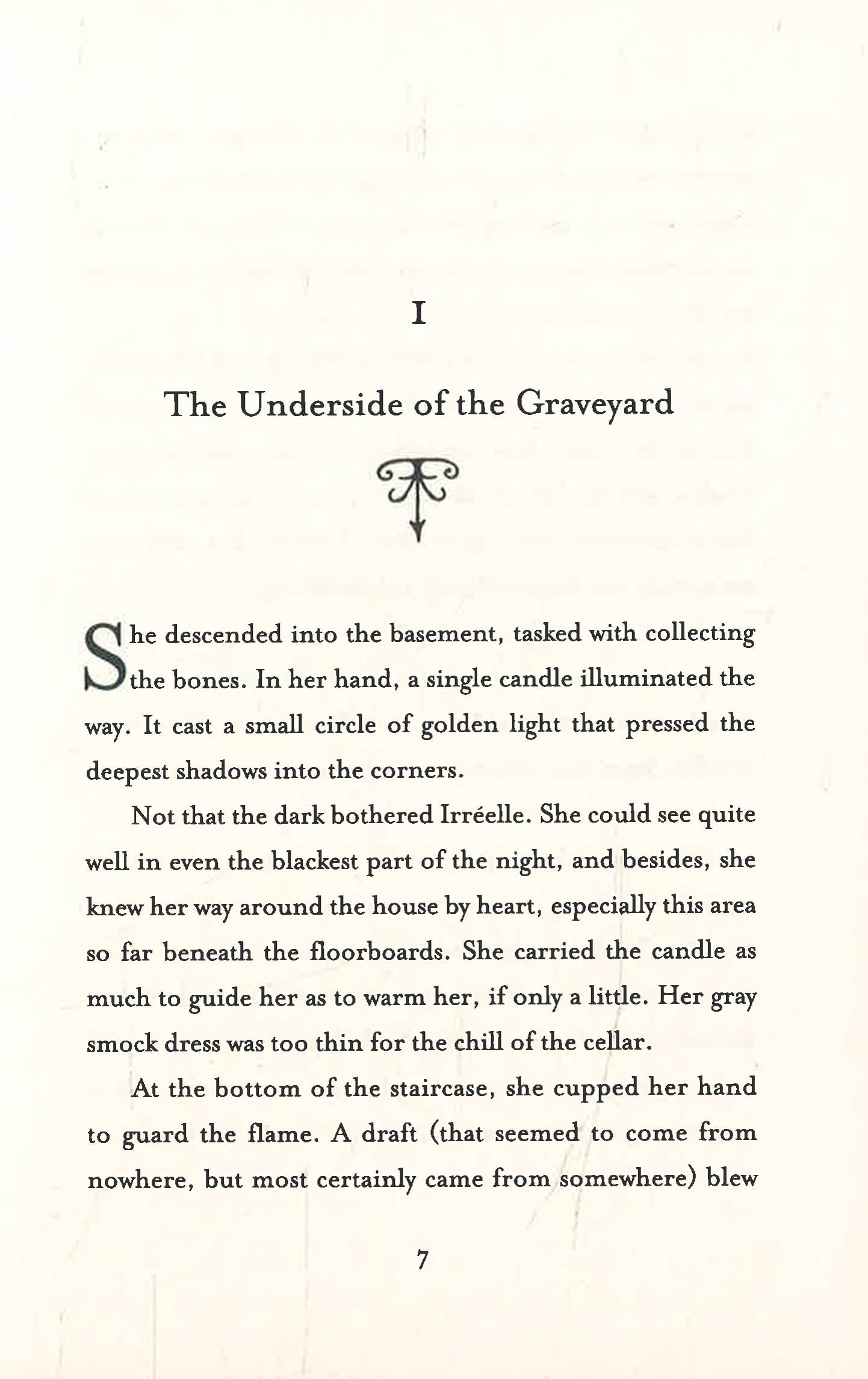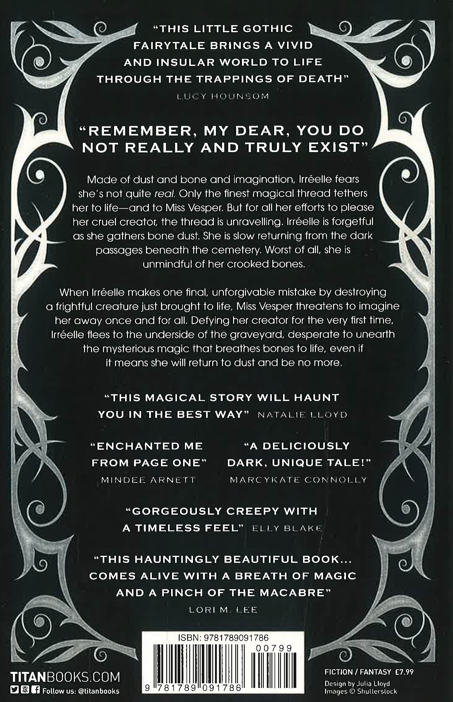 A dark, compelling debut fantasy about a mysterious girl seeking the truth about the magic that brought her to life. Made of dust and bone and imagination, Irreelle fears she's not quite real. Only the finest magical thread tethers her to life - and to Miss Vesper. But for all her efforts to please her cruel creator, the thread is unravelling. Irreelle is forgetful as she gathers bone dust. She is slow returning from the dark passages beneath the cemetery. Worst of all, she is unmindful of her crooked bones.