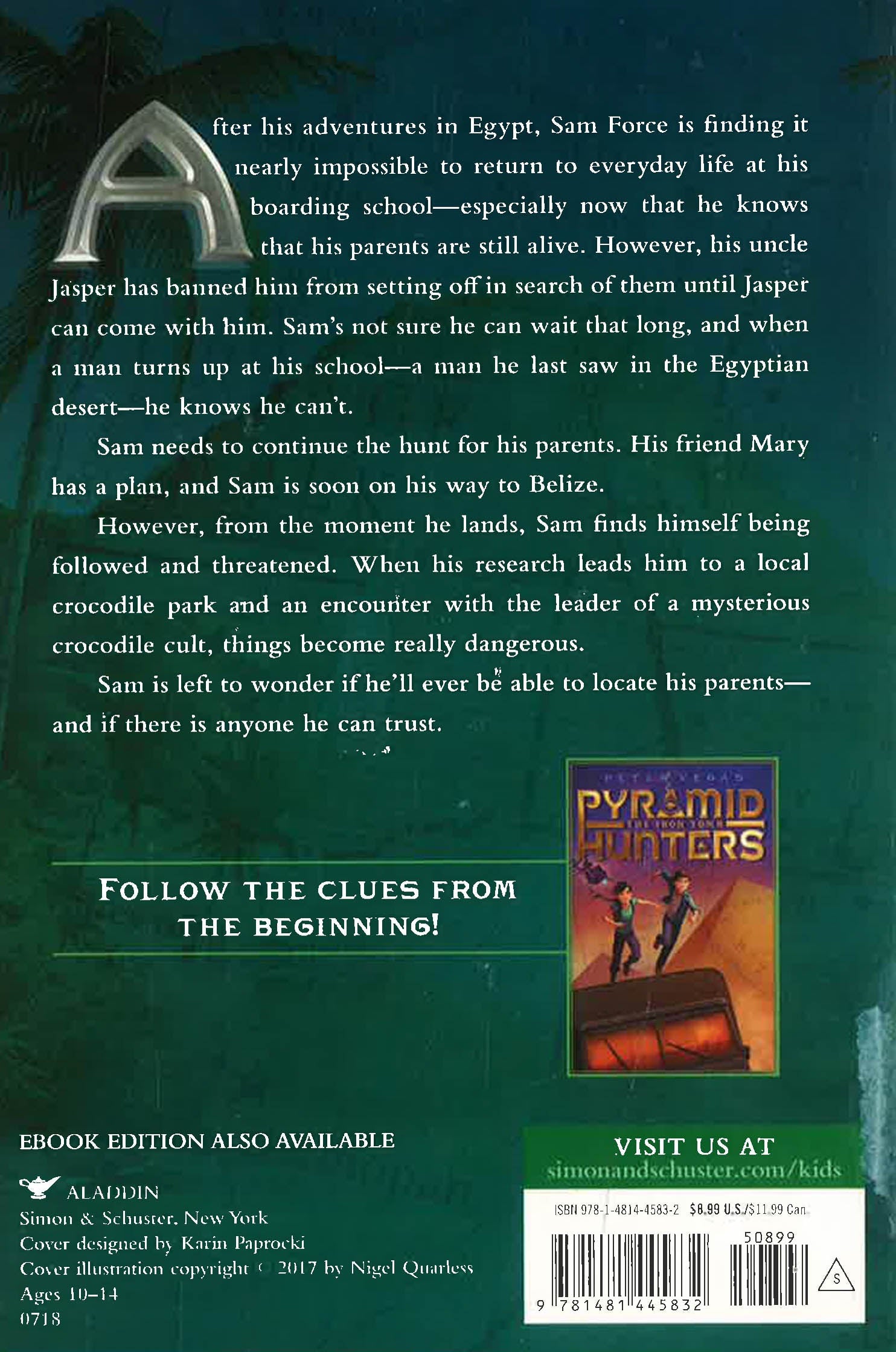 Sam Force travels to Belize to investigate an ancient and evil secret society in this second novel of the Pyramid Hunters series, which School Library Journal called a mix of "Indiana Jones, National Treasure, and The Da Vinci Code." After his adventures in Egypt, Sam Force is finding it nearly impossible to return to everyday life at boarding school--especially now that he knows his parents are still alive. However, his Uncle Jasper has banned him from setting off in search of them until he can go with Sam, but Sam's not sure he can wait that long. When a man turns up at his school--a man he last saw in the Egyptian desert--he knows he can't. Sam needs to continue the hunt for his parents. Luckily, his friend Mary Verulam has a plan, and before he knows it he's on his way to Belize. However, from the moment he lands, Sam finds himself being followed and threatened. When his research leads him to a local crocodile park and an encounter with the leader of a mysterious crocodile cult, things become really dangerous. Sam is left to wonder if he'll ever be able to locate his parents--and if there is anyone he can trust.