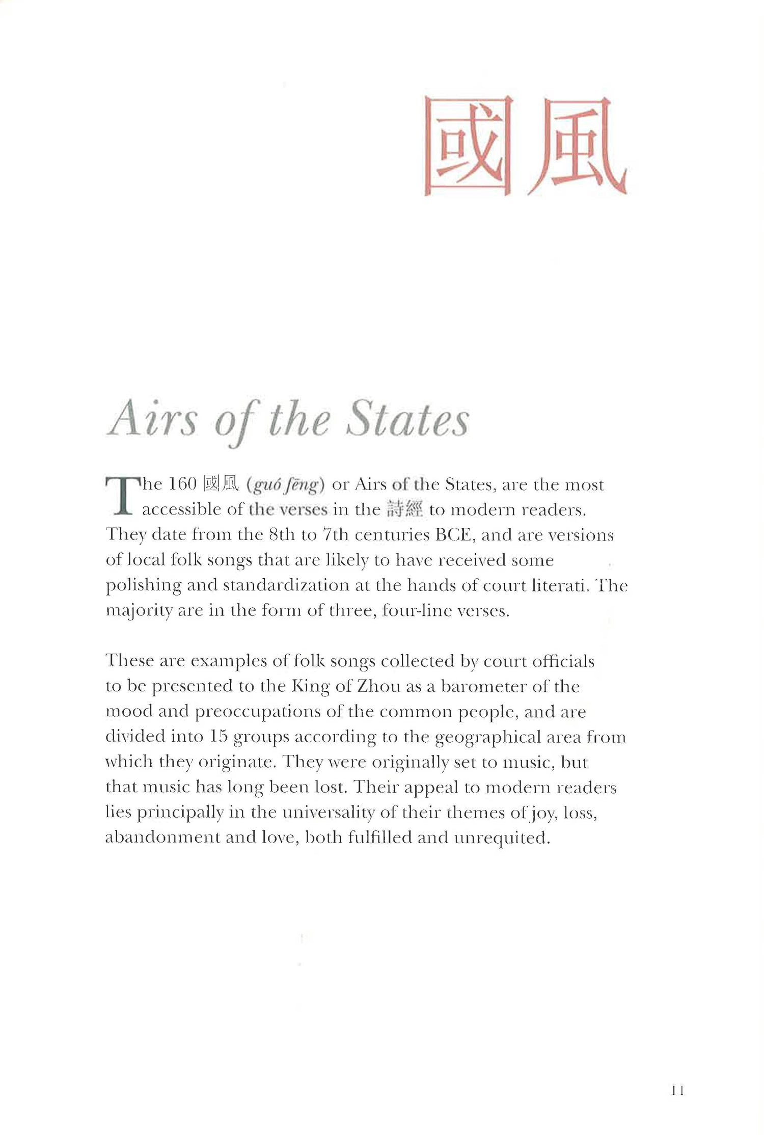 Claimed by some to have been compiled by Confucius in the 5th century BCE, the Book of Songs is an ancient anthology of Chinese poetry. Collecting poems over a number of centuries, the anthology – sometimes known as the Classic of Poetry (or Shi-jing) – is the oldest existing collection of Chinese poetry, comprising 305 works dating from the 11th to 7th centuries BCE. Some poems are shorter lyrics in simple language that are folk songs which record the voice of the common people, addressing love and courtship, political satire and protest. Other poems are about court life and dynasties. Nearly all of the songs are rhyming. In the same way that Homer’s epics took hold within the West, the Book of Songs played a role in spheres far beyond literature, with a lasting influence on education, politics and communal life. Produced using traditional Chinese bookbinding techniques, this edition of the Book of Songs is a selected anthology of 25 classic poems presented in an exquisite dual-language edition.