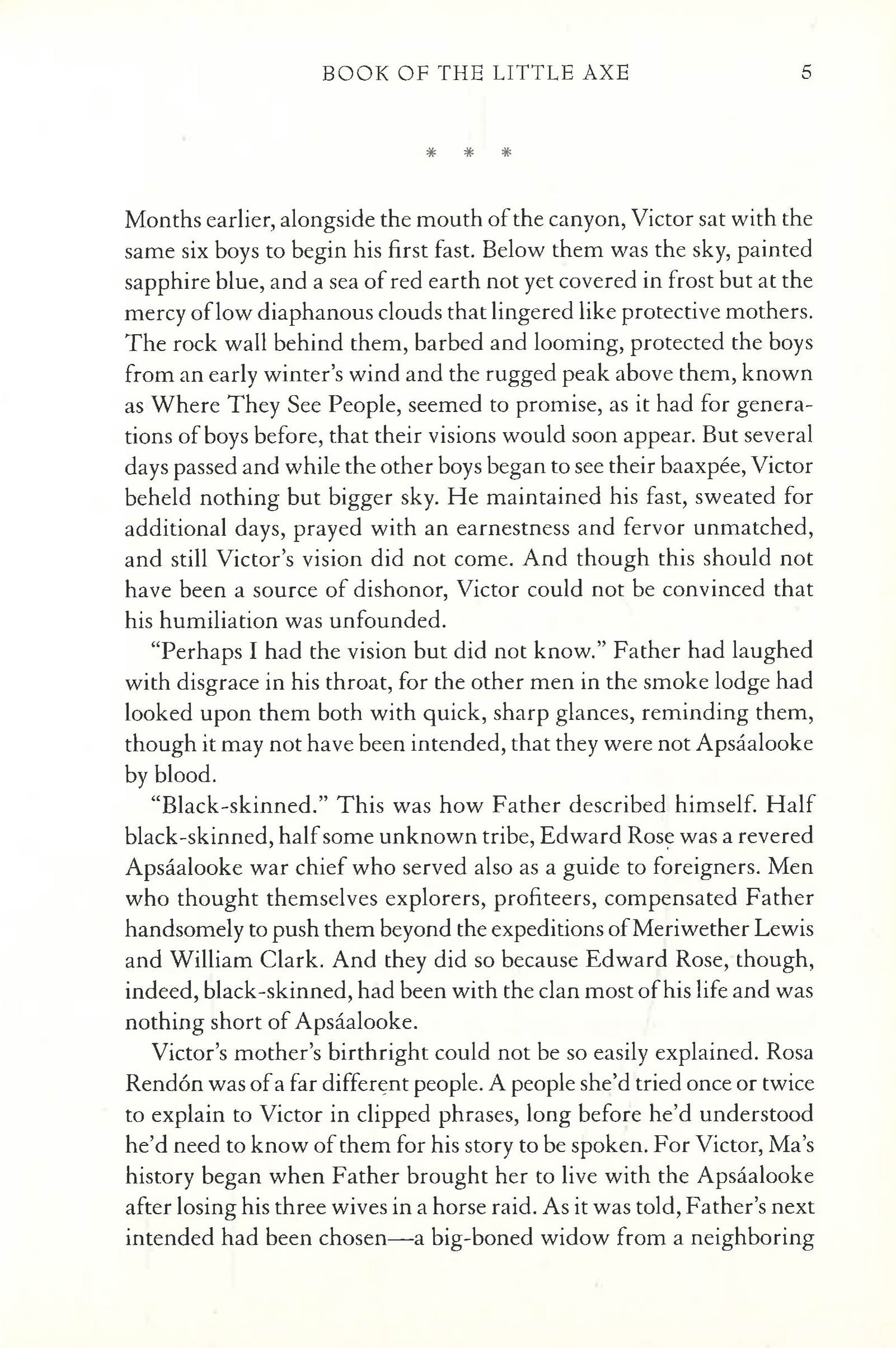 By 1830, Rosa is living among the Crow Nation in Bighorn, Montana with her children and her husband, Edward Rose, a Crow chief. Her son Victor is of the age where he must seek his vision and become a man. But his path forward is blocked by secrets Rosa has kept from him. So Rosa must take him to where his story began and, in turn, retrace her own roots, acknowledging along the way, the painful events that forced her from the middle of an ocean to the rugged terrain of a far-away land.
