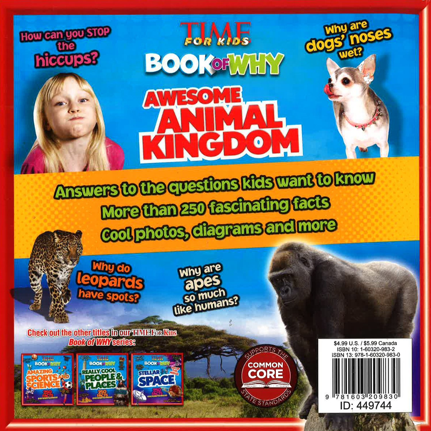 TIME for Kids The BIG Book of Why: Awesome Animal Kingdom answers the why, what, when, where, who and how questions about humans and animals that kids commonly ask, but adults can rarely answer. Why do we have eyebrows? What's the difference between a crocodile and an alligator? How does aspirin know where to go in the body to take care of pain? What's the fastest a human is capable of running? Why do animals' eyes glow in the dark? Written in an upbeat manner, each answer is accompanied by either a photo or an illustration to show the reasons why. Of course, TIME For Kids goes beyond answering the question, and dips into the science or history to further explain the answer in an easy-to-follow, straightforward manner. TIME for Kids The BIG Book of Why: Awesome Animal Kingdom is a must-have book to satisfy the most curious of kids.