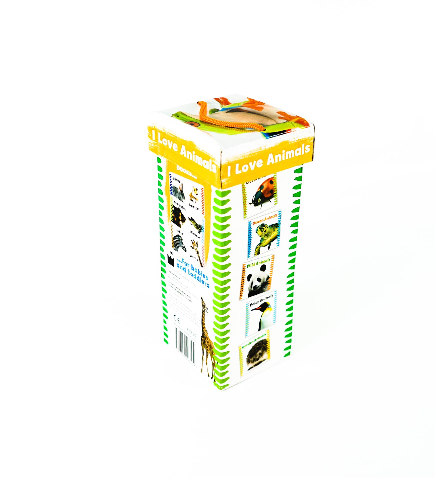 Includes 10 chunky board books: Little animals, ocean animals, wild animals, polar animals, garden animals, big animals, family animals, farm animals, zoo animals, jungle animals.
