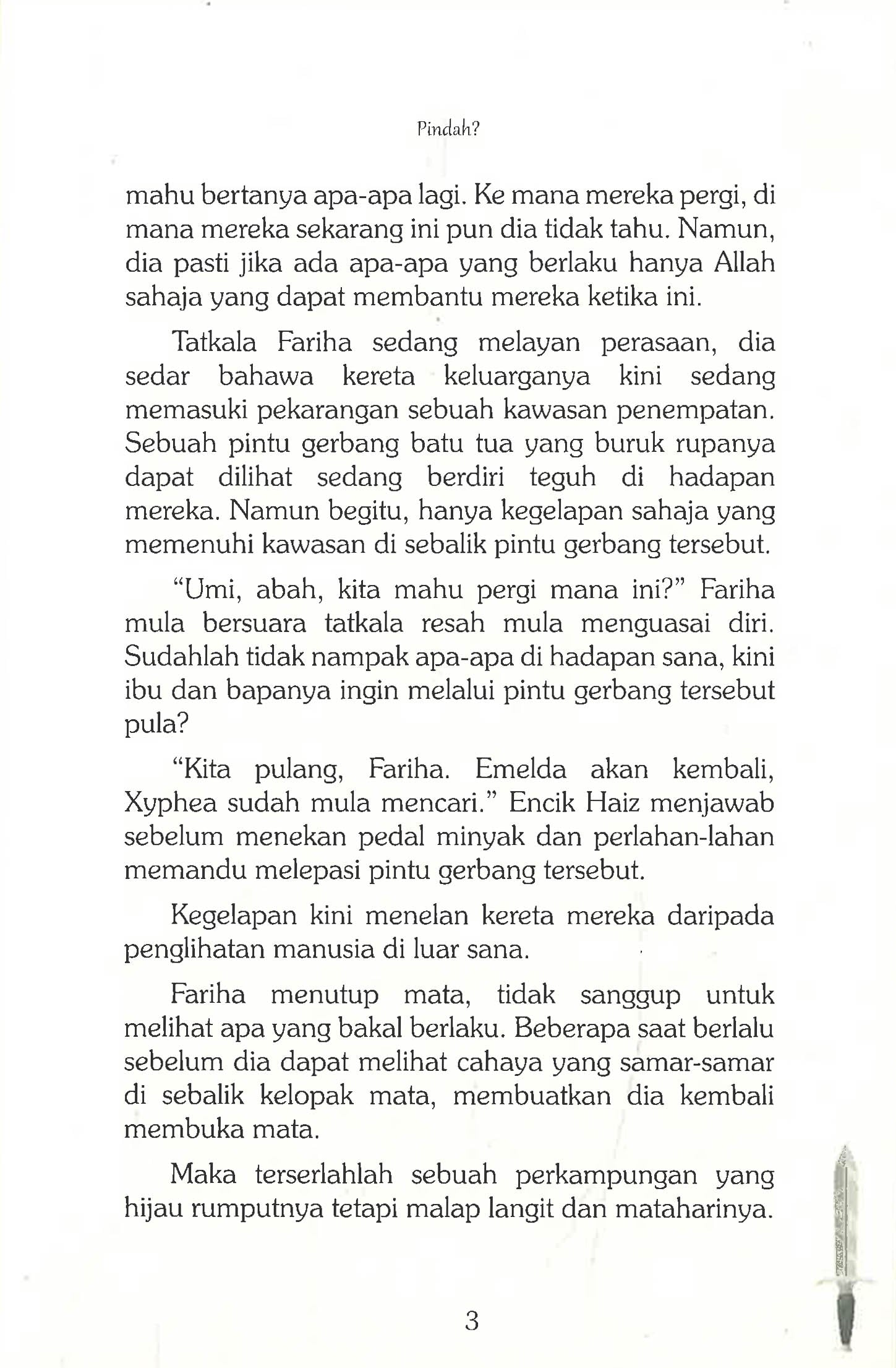 “Pewaris Zailyrosam akan muncul bersama penjaganya. Fariha, awak harus sentiasa bersedia.†Seorang gadis yang lemah-lembut dan bersopan-santun. Itulah Fariha, gadis bijak yang disenangi ramai dan digemari para guru di sekolah. Sehinggalah satu hari, pelajaran terpaksa ditinggalkan. Dalam keterpaksaan, dia dipanggil untuk menghadap datuknya Tok Mali di sebuah perkampungan yang sangat asing baginya. Tanpa diduga, dia telah diarahkan untuk menjadi seorang pahlawan di kampung tersebut yang dikenali sebagai perkampungan Emelda. Sebatang pena sakti yang dipanggil Pena Zailyrosam, bakal bertemu dengan pemiliknya, menjadi faktor utama arahan tersebut dipertanggungjawabkan ke atasnya. Oleh itu, fenomena misteri yang terjadi ini memaksanya untuk menjadi seseorang yang berlainan. Mampukah dia, seorang yang lemah-lembut menjadi seorang yang lasak dan mahir bermain pedang?