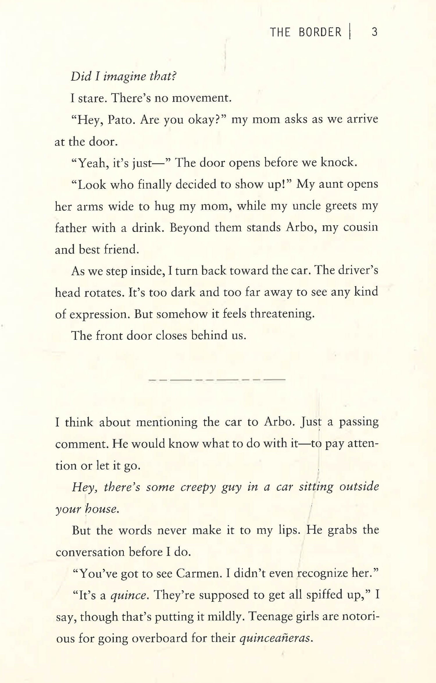 One moment changed their lives forever. A band plays, glasses clink, and four teens sneak into the Mexican desert, the hum of celebration receding behind them. Crack. Crack. Crack. Not fireworks--gunshots. The music stops. And Pato, Arbo, Marcos, and Gladys are powerless as the lives they once knew are taken from them. Then they are seen by the gunmen. They run. Except they have nowhere to go. The narcos responsible for their families' murders have put out a reward for the teens' capture. Staying in Mexico is certain death, but attempting to cross the border through an unforgiving desert may be as deadly as the secrets they are trying to escape...