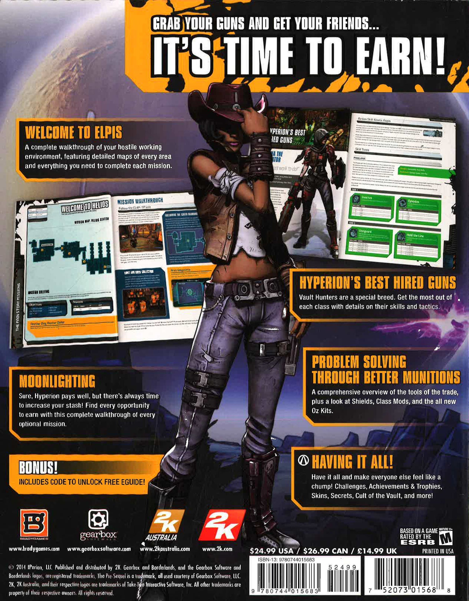 Shoot 'n' loot your way through a brand new adventure on Pandora's moon - this BradyGames strategy guide covers all the lunar action in one of the best shooting games!Your complete walkthrough to the new Borderlands adventure, Borderlands: The Pre-Sequel Signature Series Strategy Guide provides all the tactics and strategy to defeat the bosses. Set between Borderlands and Borderlands 2 as Handsome Jack is rising to power, you'll join in the action of this pre-sequel on one of Pandora's gravity-challenged moons with new, exciting and unique creatures, guns and opportunities for loot!Make sure you get to know your weapons and equipment with this comprehensive strategy guide and discover amazing new additions to the Borderlands game such as jet packs, ice and laser weapons and lunar vehicles! Find precise locations of all quest points, chests and hidden collectibles with the maps inside plus use the bestiary to look up vital stats, critical hit areas and locations for all enemies so you can take them down.With the signature BradyGames series treatment plus premium cover Borderlands: The Pre-Sequel Signature Series Strategy Guide is ideal for any fan of shooting games or Borderlands.