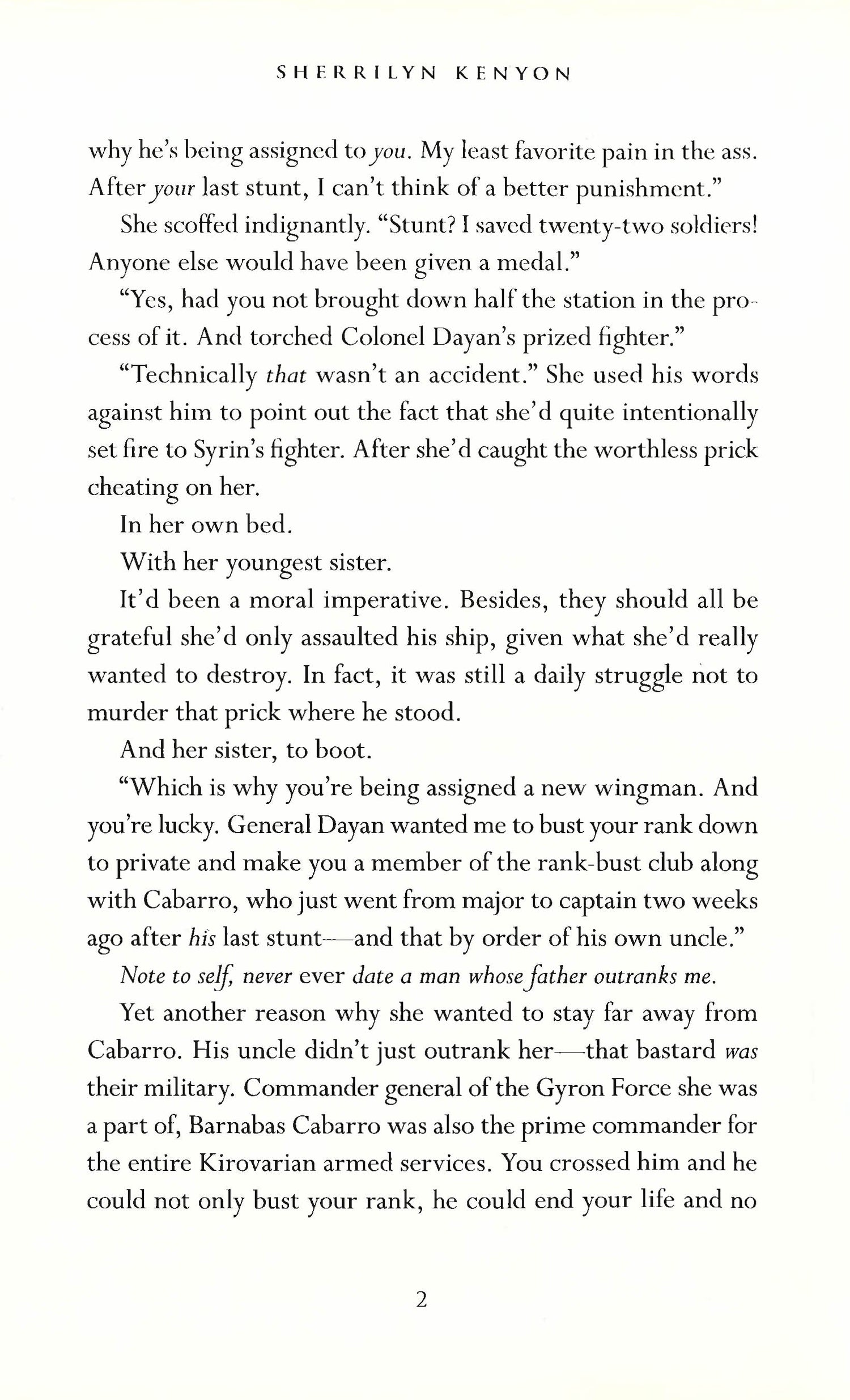 A publishing phenomenon... [Sherrilyn Kenyon] is the reigning queen of the wildly successful paranormal scene.' Publishers Weekly 'Kenyon builds a story that is wall-to-wall action, yet touched with poignancy.' Romantic TimesA fate worse than death . . .Bastien Cabarro survived the brutal slaughter of his entire family only to have his wife pin their murders on him. Made Ravin by The League, he is now a target for their assassins-in-training to hunt and kill. The average life expectancy for such beings is six weeks. But defying the odds is what this Gyron Force officer does best, and Bastien won't rest until he lays his betrayers in their graves.Ten years later, he has one chance to balance the scales of justice, provided he relies on his former wingman - the very sister of the woman who testified against him.Major Ember Wyldestarrin joined the outlaw Tavali the day Kirovar fell into the hands of a tyrant, and she and her team were left on an outpost to die under the barrage of enemy fire. The last thing she wants is to be involved in politics again. But if she doesn't bring Bastien in, her sister will pay the ultimate price. Now she has to find some way to betray her former wingman before he catches on and kills her. Even so, treachery doesn't come easy to a woman who took a loyalty oath to protect her homeworld and comrades-in-arms, especially when Bastien means more to her than just another partner.Yet as she tries to do right for her family, she learns that Bastien doesn't just hold the key to the fate of Kirovar, he is vital to The Sentella-League war, and to The Tavali. If she hands him over, three nations fall. If she doesn't, her entire family dies. Their fates are all in her hands, and time for all of them is quickly running out.