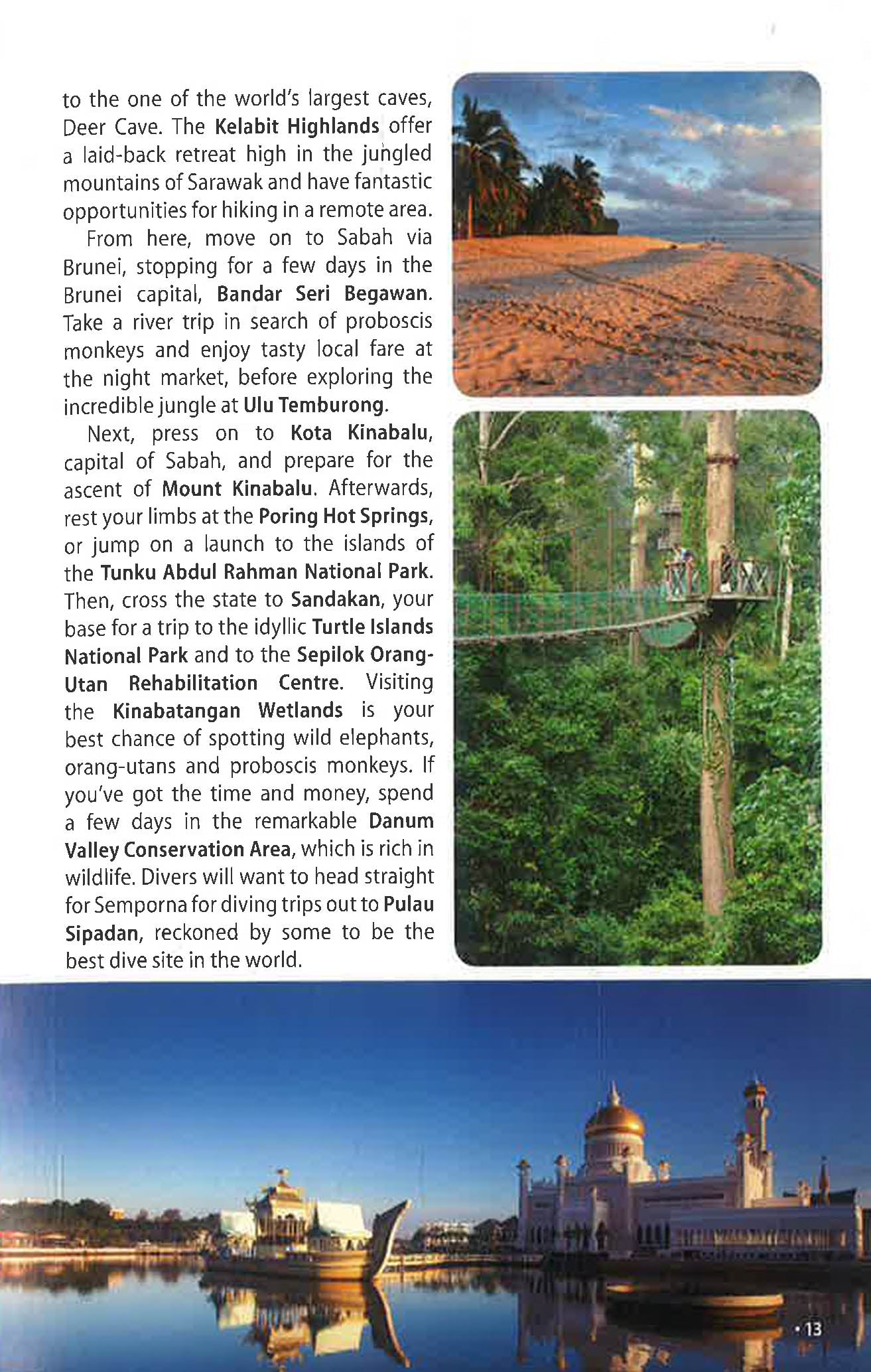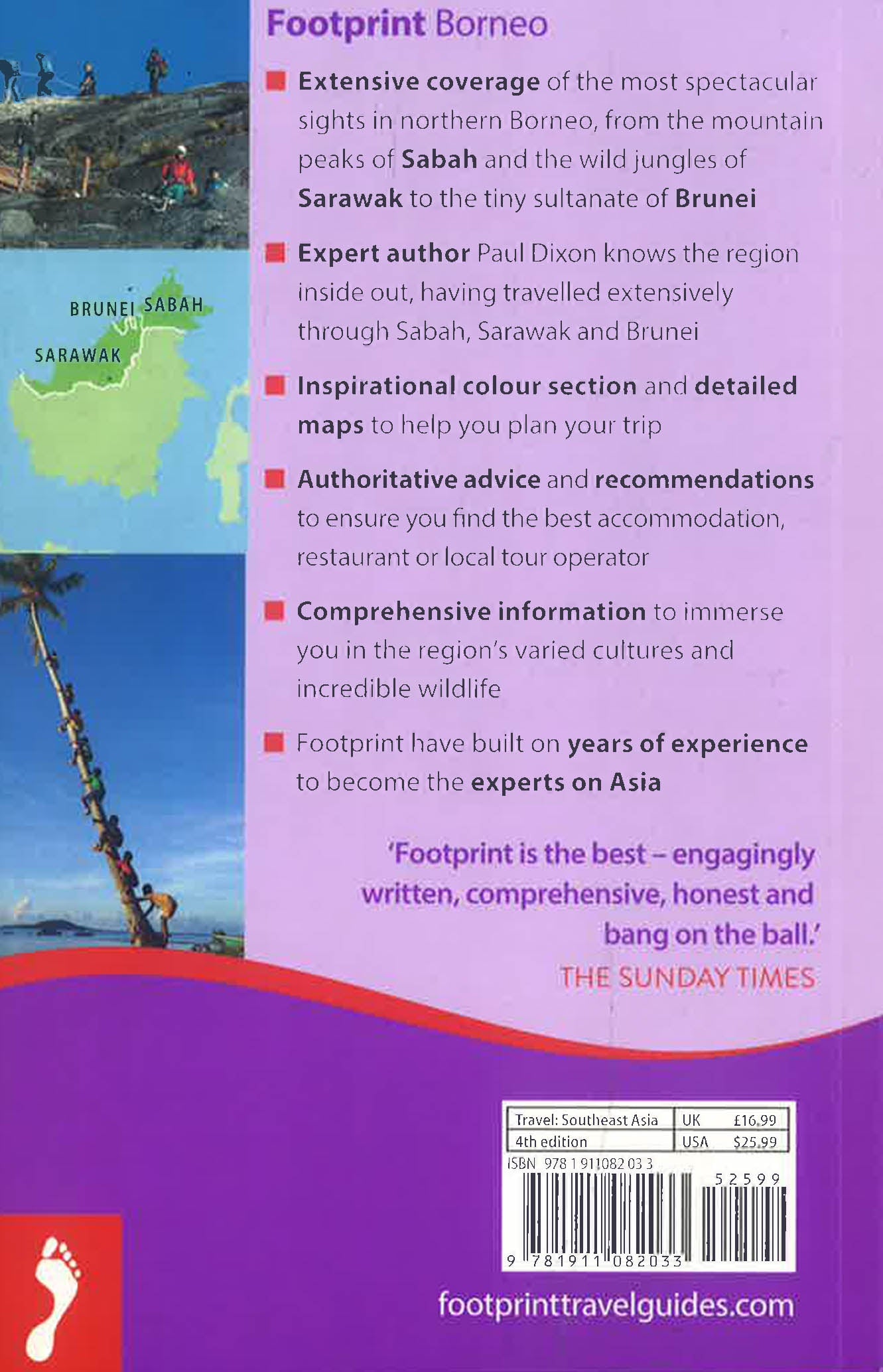 The third largest island in the world, Borneo screams adventure. Footprint's 4th edition Borneo Handbook: Sarawak - Brunei - Sabah will guide you from the dense & pristine rainforest to the glimmering golden roofs of Brunei, with moody mountain peaks in between. * Dedicated to the northern half of Borneo: Sarawak, Brunei, Sabah * Also includes what to do in the gateway cities of Singapore & Kuala Lumpur * Loaded with information and suggestions on how to get off the beaten track, from unparalleled underwater adventures to wildlife spotting and exploring caves * Includes comprehensive information on everything from transport and practicalities to history, culture & landscape * Plus all the usual accommodation, eating and drinking listings for every budget * Full-colour planning section to inspire and help you find the best experiences * Personal recommendations from the author on everything from snorkelling and birdwatching, to colonial splendours and forest longhouses From seeing orang-utans, elephants and crocodiles to relaxing on a boat along the Rejang, Footprint's fully updated 4th edition will help you navigate this untamed destination.