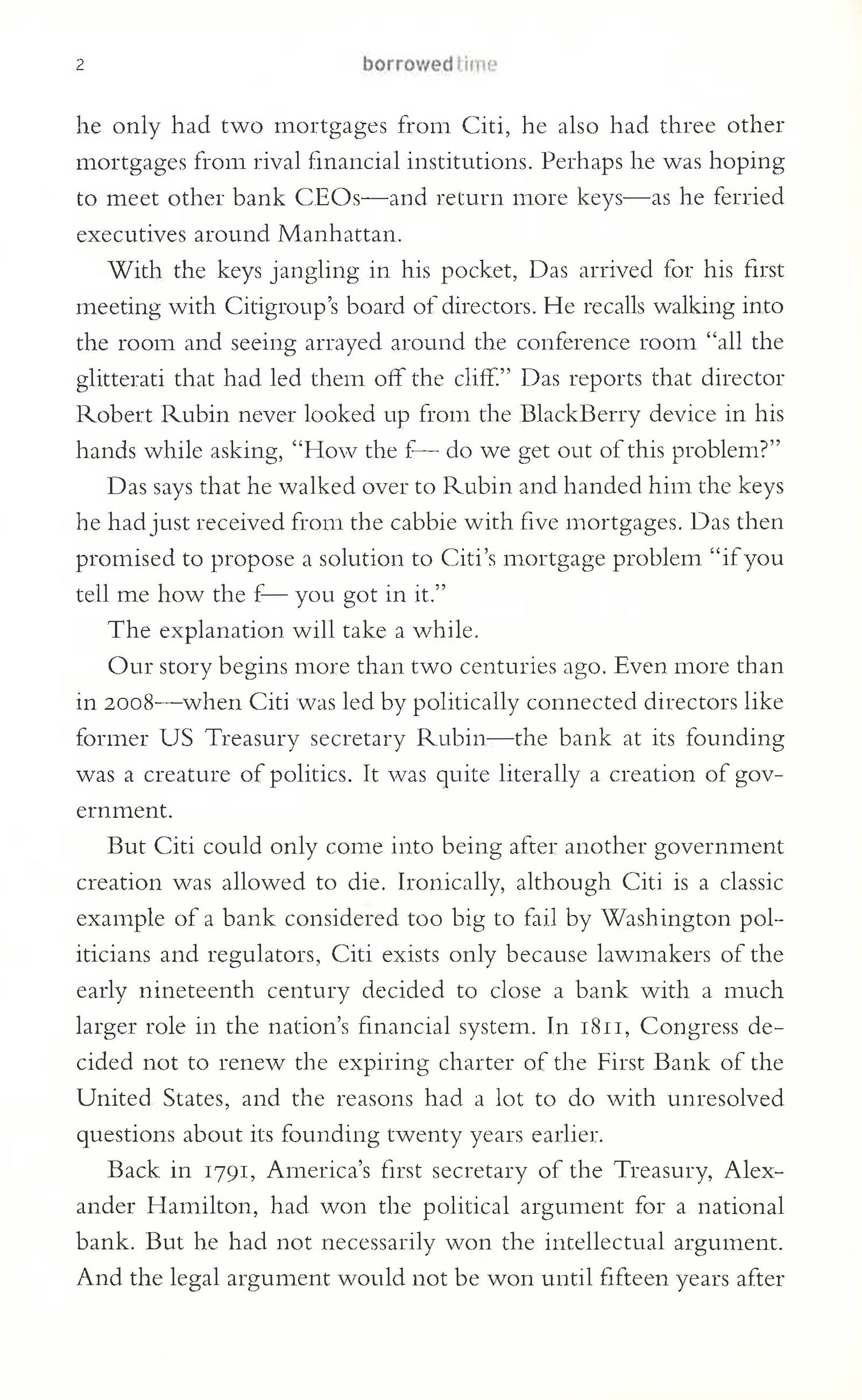 The alarming, untold story of Citigroup-one of the largest financial institutions in the world-from its founding in 1812 to its role in the 2008 financial crisis, and the many near-death experiences in between. During the 2008 financial crisis, we were told that Citi was a victim of events beyond its control-the larger financial panic, unforeseen economic disruptions and a perfect storm of credit expansion and private greed. To save the economy and keep the bank afloat, the government provided huge infusions of cash through multiple bailouts that frustrated and angered the American public. But, as Wall Street Journal writer James Freeman and financial expert Vern McKinley reveal, the 2008 crisis was just one of many disasters Citi has experienced since its founding more than two hundred years ago. In Borrowed Time they reveal Citi's disturbing history of instability and government support. It's a story that neither Citi nor Washington wants told. Citi has long been tied to the federal government in a relationship that has benefited both. From its earliest years, its well-connected leadership-most of its initial stockholders had owned stock in the Bank of the United States-took massive risks that led to crisis. But thanks to a rescue by private investors, including John Jacob Astor, the bank survived throughout the nineteenth century. This is just the tip of the iceberg. The scale of the financial panic of 2008 was hardly unprecedented. As Borrowed Time shows, crisis and outright disasters have been surprisingly common during the century of government-protected banking-especially at Citi.