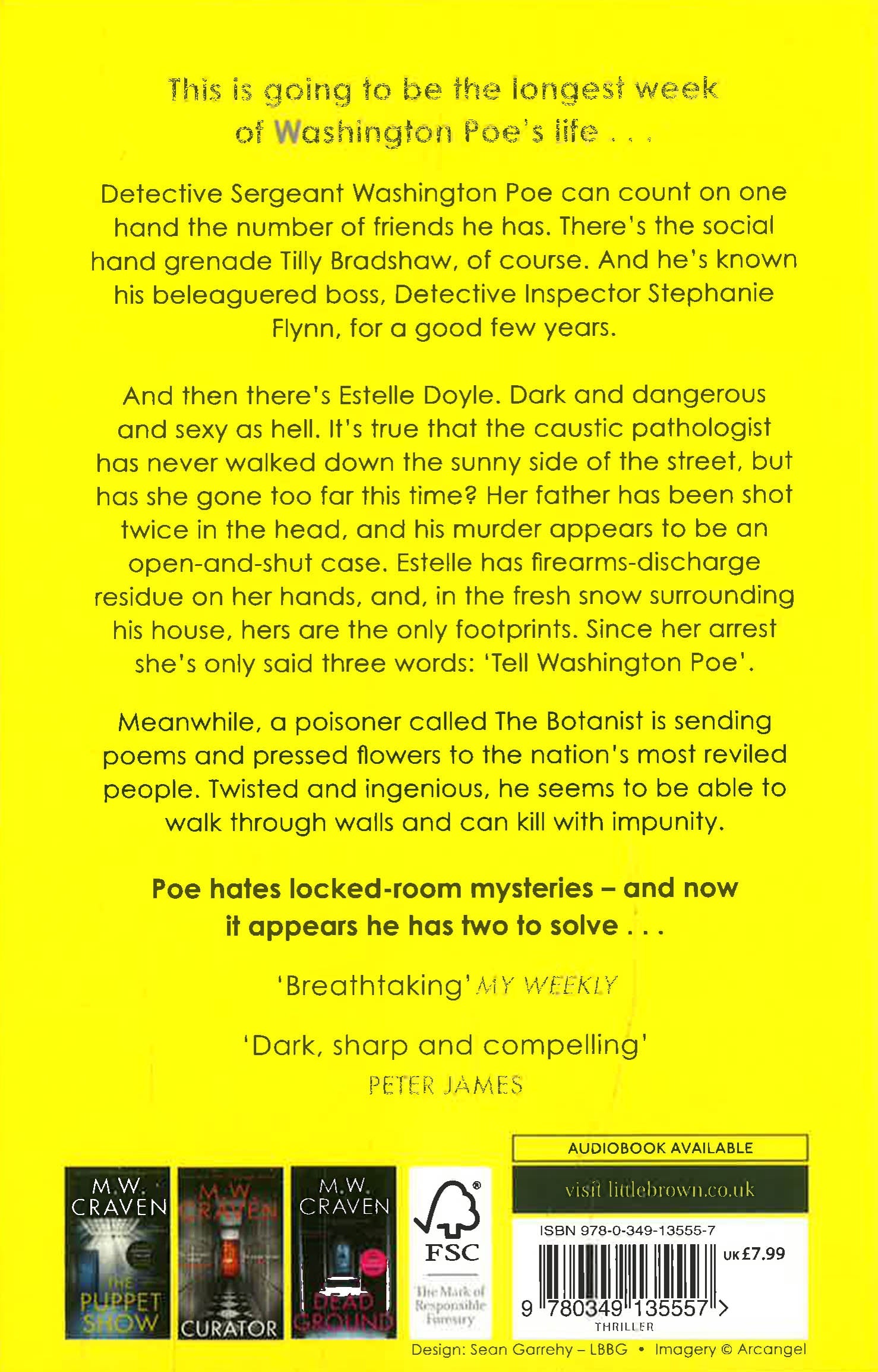 Detective Sergeant Washington Poe can count on one hand the number of friends he has. And he'd still have his thumb left. There's the insanely brilliant, guilelessly innocent civilian analyst, Tilly Bradshaw of course. He's known his beleaguered boss, Detective Inspector Stephanie Flynn for years as he has his nearest neighbour, full-time shepherd/part-time dog sitter, Victoria.