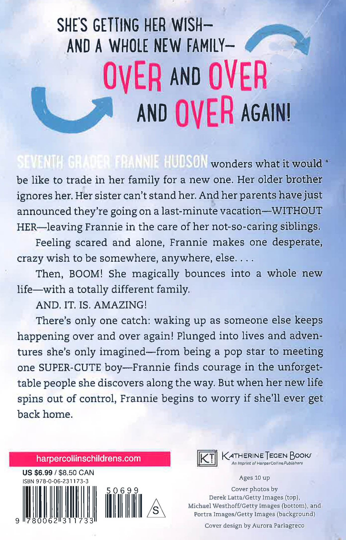 Seventh grader Frannie Hudson wonders what it would be like to trade in her family for a new one. Her big brother ignores her. Her mean older sister can’t stand her. And her parents have just announced they’re going on a last-minute vacation - without her.When Frannie makes one desperate, crazy wish - BOOM! - she magically bounces into a whole new life, with a totally different family. And. It. Is. Amazing! There’s only one catch: waking up as someone else keeps happening. Plunged into lives and adventures she’s only imagined - from being a pop star to meeting one super-cute boy - Frannie finds courage in the unforgettable friends and families she meets along the way. But as her new life spins out of control, Frannie begins to worry if she’ll ever get back home.A celebration of the power of love and connection, Megan Shull’s extraordinary new novel captures one girl’s journey to find her voice, heal her heart, and discover the joy of bouncing back.