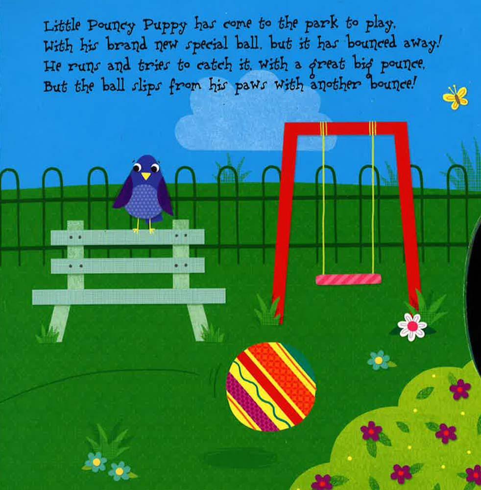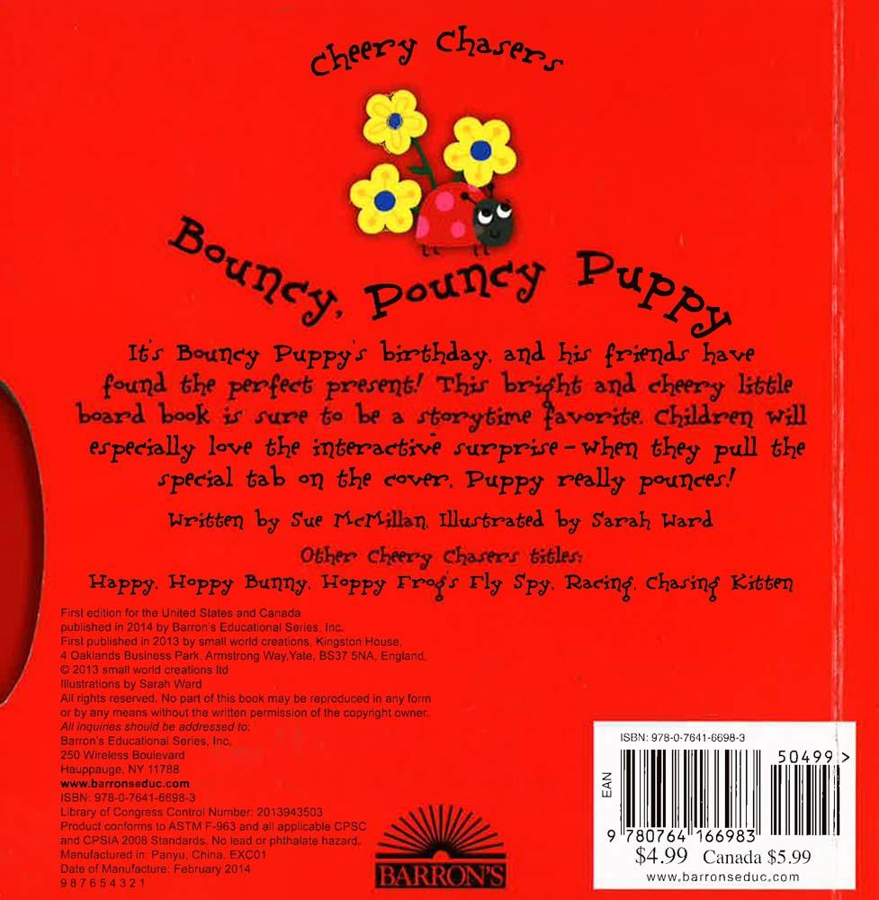 Bright illustration, cheery characters, and lively rhyming text will make this little board book a favorite for story time. Children will especially love the interactive surprise--the main character, featured on the cover, springs into action when the special tab is pulled! Its Bouncy Puppy's birthday, and his friends have found the perfect present. When children pull the special tab on the cover, Puppy really pounces!
