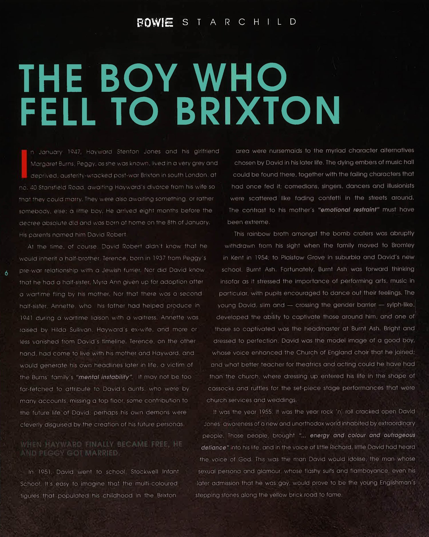Here is the story of the boy from Brixton who became one of the most famous artists of the 20th century, returned to prominence in the 21st with music and visions informed by a sense of his own mortality and who through his life and work, changed lives and those of generations to come.