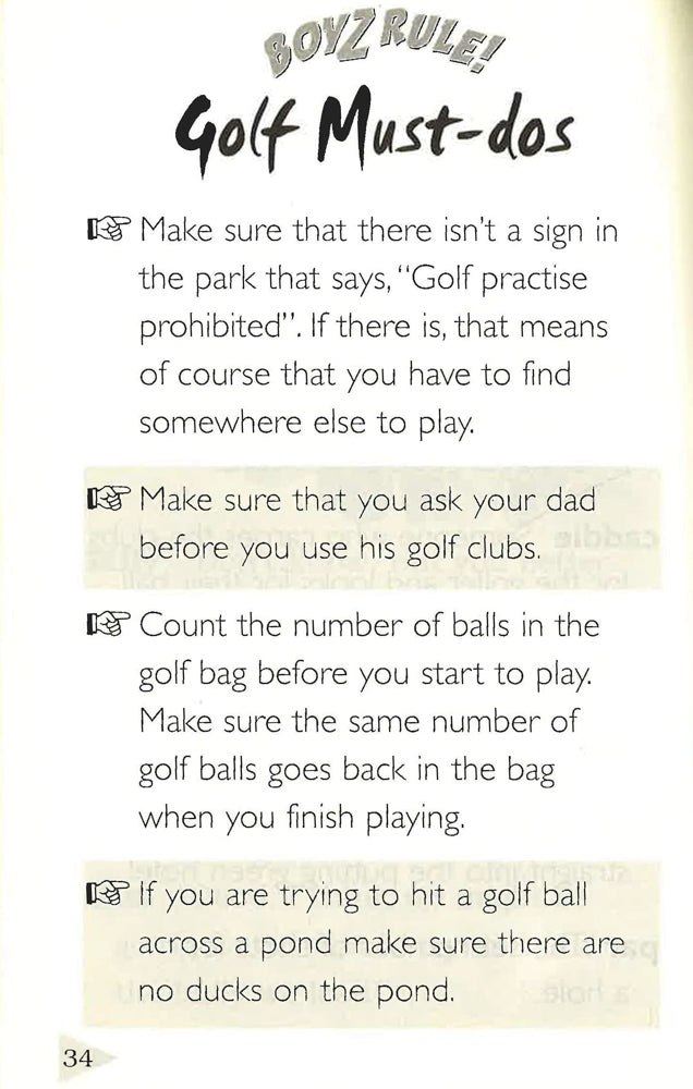 These bestselling books will have readers rolling about with laughter as they relate to the antics of 'boys being boys' in a variety of everyday situations. Suitable for ages 7-10. Sam and Billy decide to play golf in their local park. They map out their course and get started, but along the way they come up against a few obstacles - including Billy's Dad.