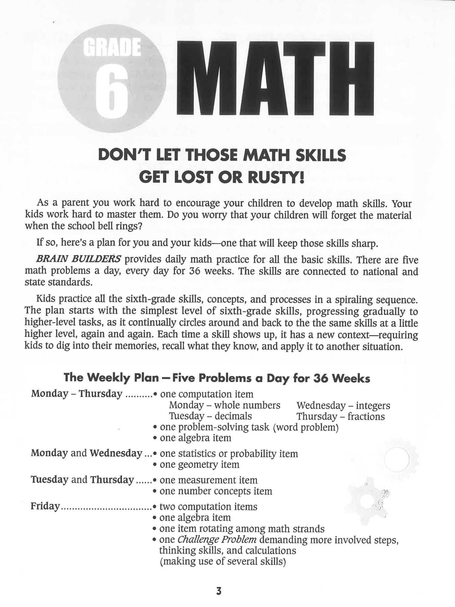 Reinforce the math and language arts lessons kids learn at school! Complete with daily activities and funny characters and images to make learning fun, this book is sure to enhance kids understanding. Plus, tips for adults to track and reward progress. Put your sixth grader a step ahead with Brain Builders: Daily Practice for Math and Language Arts!