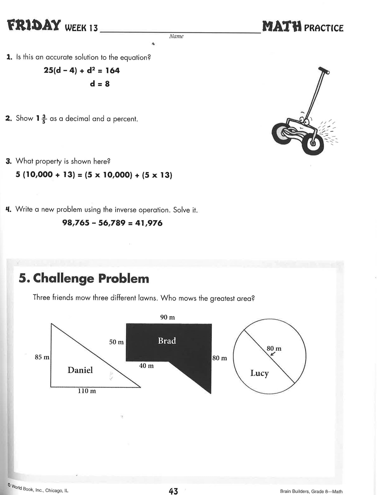 Reinforce the math and language arts lessons kids learn at school! Complete with daily activities and funny characters and images to make learning fun, this book is sure to enhance kids understanding. Plus, tips for adults to track and reward progress. Put your eighth grader a step ahead with Brain Builders: Daily Practice for Math and Language Arts!
