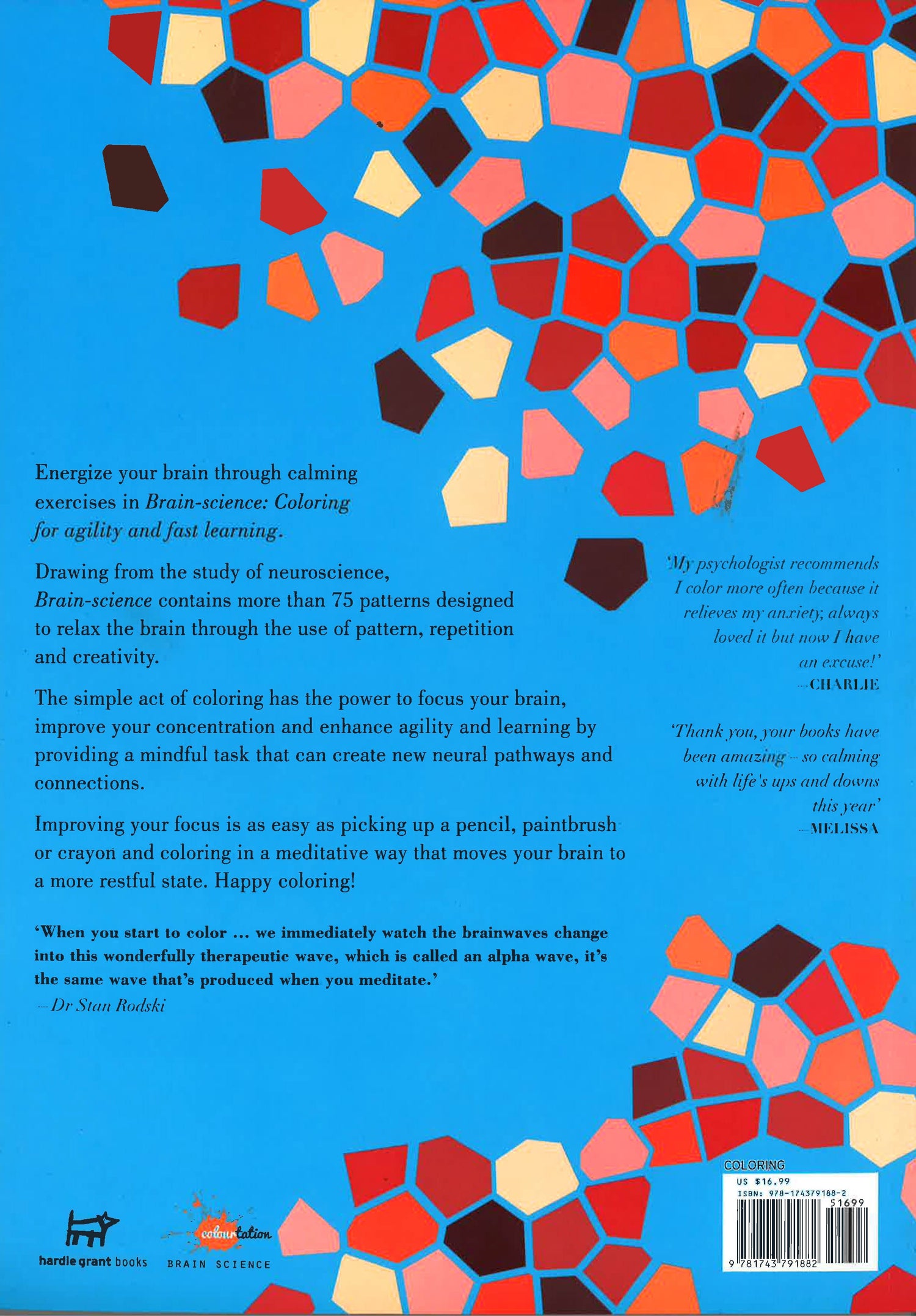 The only coloring exercises scientifically proven to ease stress Drawing from the study of neuroscience, each of these three unique coloring books contain more than 75 unique patterns designed to focus your brain through the use of pattern, repetition, single focus, and creativity. It is inevitable that our brains get overwhelmed at times by the bombardment of information, but it is essential for our health and well-being to be able to draw upon our own resources to deal with that stress. The simple act of coloring has the power to engage your brain, improve your mood, and kindle creativity by providing a mindful task that can forge new neural pathways and connections in our brains. In this series, Dr Rodski looks at the fight or flight reaction to stress and how coloring can help; how repetition, pattern, and focus relax the brain; and how coloring can stimulate the brain to be more agile and learn faster.