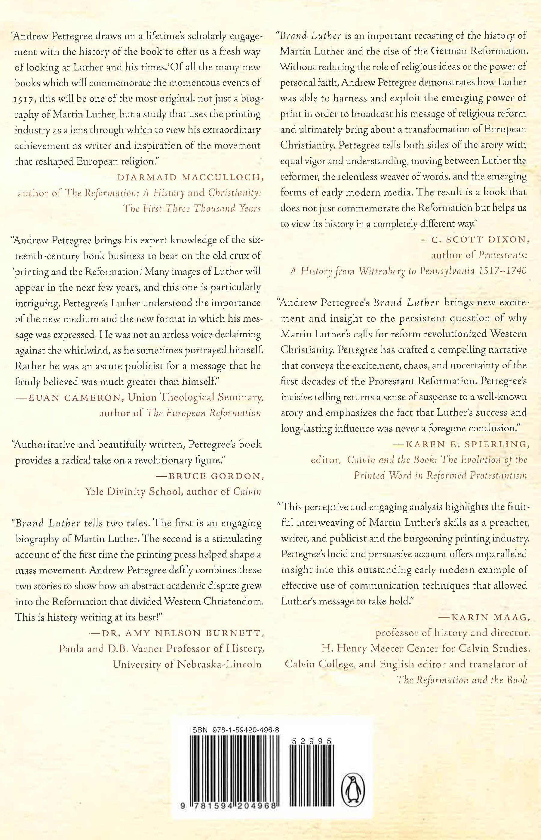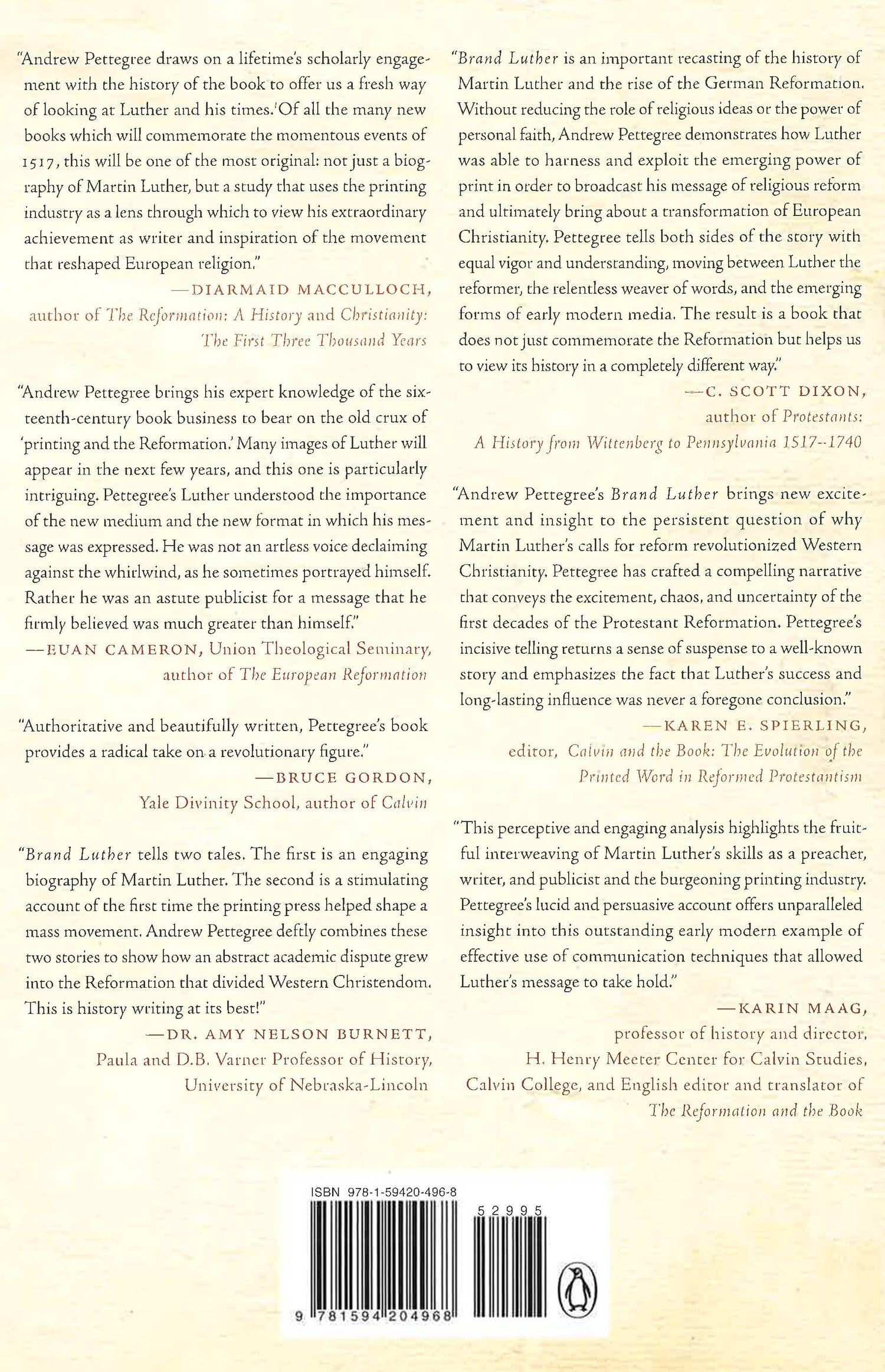A revolutionary look at Martin Luther, the Reformation, and the birth of publishing, on the eve of the Reformation's 500th anniversary When Martin Luther posted his "theses" on the door of the Wittenberg church in 1517, protesting corrupt practices, he was virtually unknown. Within months, his ideas spread across Germany, then all of Europe; within years, their author was not just famous, but infamous, responsible for catalyzing the violent wave of religious reform that would come to be known as the Protestant Reformation and engulfing Europe in decades of bloody war. Luther came of age with the printing press, and the path to glory of neither one was obvious to the casual observer of the time. Printing was, and is, a risky business--the questions were how to know how much to print and how to get there before the competition. Pettegree illustrates Luther's great gifts not simply as a theologian, but as a communicator, indeed, as the world's first mass-media figure, its first brand. He recognized in printing the power of pamphlets, written in the colloquial German of everyday people, to win the battle of ideas. But that wasn't enough--not just words, but the medium itself was the message. Fatefully, Luther had a partner in the form of artist and businessman Lucas Cranach, who together with Wittenberg's printers created the distinctive look of Luther's pamphlets. Together, Luther and Cranach created a product that spread like wildfire--it was both incredibly successful and widely imitated. Soon Germany was overwhelmed by a blizzard of pamphlets, with Wittenberg at its heart; the Reformation itself would blaze on for more than a hundred years. Publishing in advance of the Reformation's 500th anniversary, Brand Luther fuses the history of religion, of printing, and of capitalism--the literal marketplace of ideas--into one enthralling story, revolutionizing our understanding of one of the pivotal figures and eras in human history.