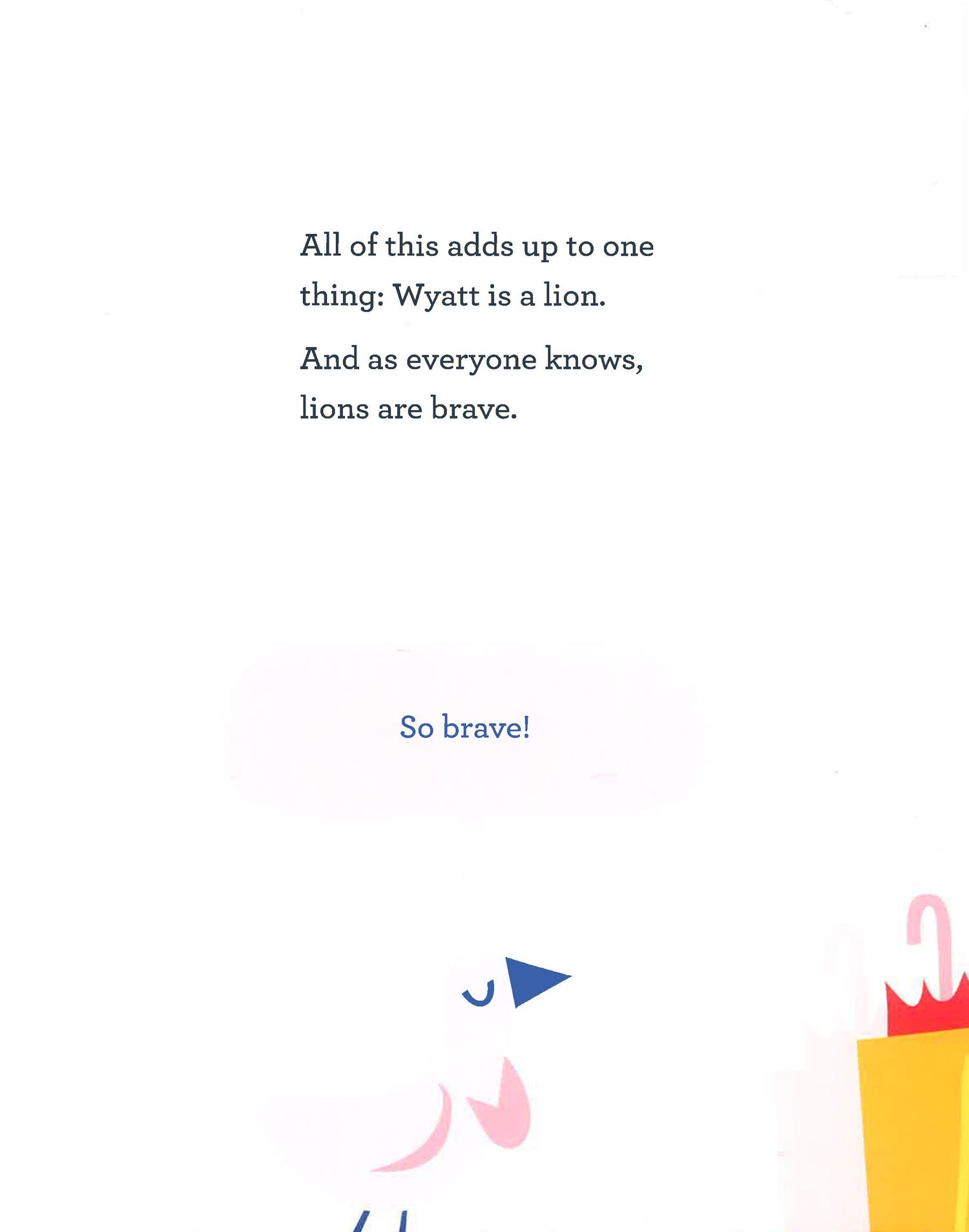 Wyatt is a lion, and everyone knows that means one thing: Wyatt is BRAVE (like all lions, of course). But no one realizes that Wyatt does have a fear. And when he finds himself face-to-face with that fear, he must ask. Will he be able to conquer his fear and truly be BRAVE?
