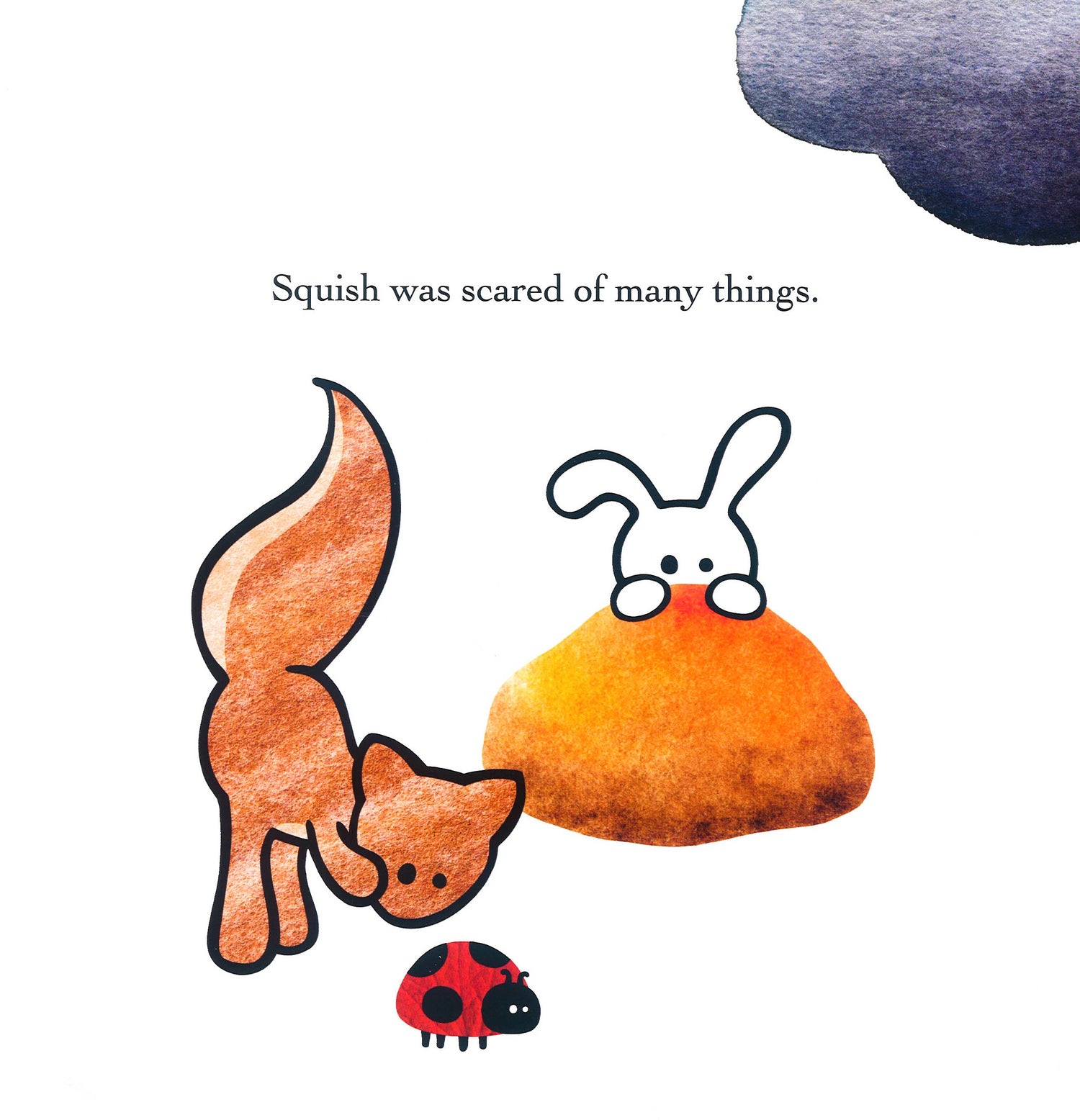 Who's afraid of the dark? Not Squish! Squish Rabbit is a very small rabbit, and he's afraid of lots of things. Like storms. And chickens (you would be too, if you were small!). And the dark. Especially the dark. But when he goes to meet his good friend Twitch the squirrel one evening, he can't find her. She's missing! And it's getting dark! Squish knows he must be brave to find her, but it takes all of his courage . . . to discover that the dark can be magical, especially when filled with stars. With playful text and adorable illustrations, "Brave Squish Rabbit" will encourage young readers to face their fears.