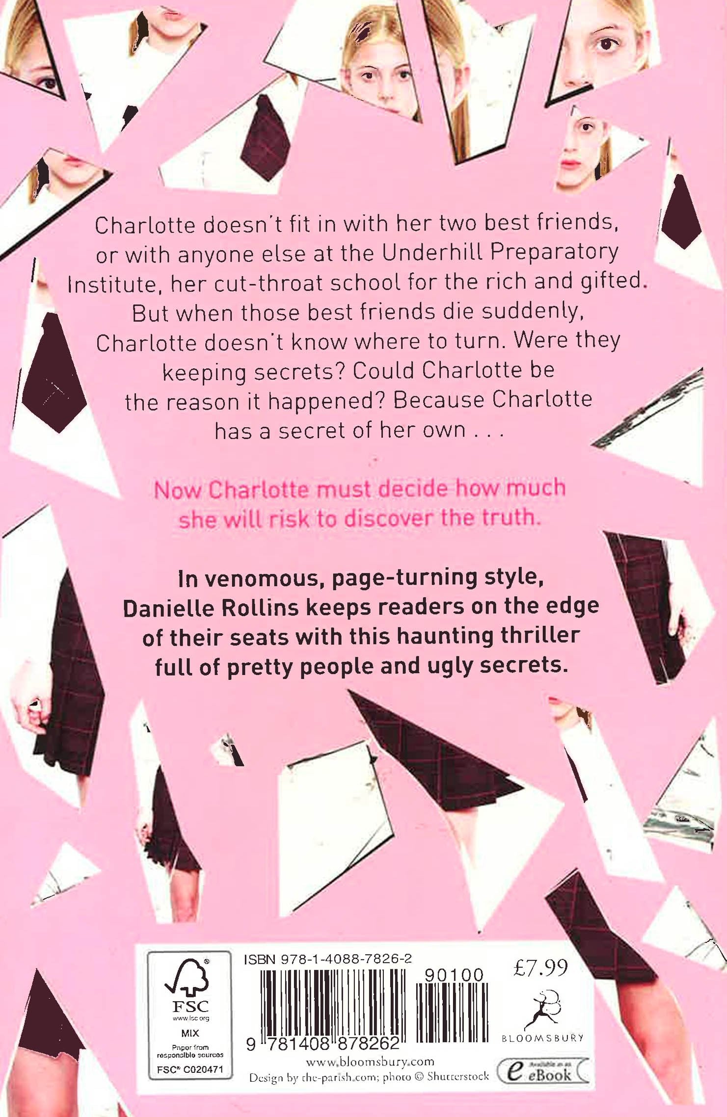 Charlotte doesn't fit in with her two best friends, or with anyone else at The Underhill Preparatory Institute, her cut-throat school for the rich and gifted. But when those best friends die suddenly, Charlotte doesn't know where to turn. Were they keeping secrets? Could Charlotte be the reason they did it? Because Charlotte has a secret of her own, and now she must decide how much she will risk to discover the truth. In venomous, page-turning style, Danielle Rollins keeps readers on the edge of their seats with this haunting thriller full of pretty people and ugly secrets. This will thrill fans of E. Lockhart and Stephen King.