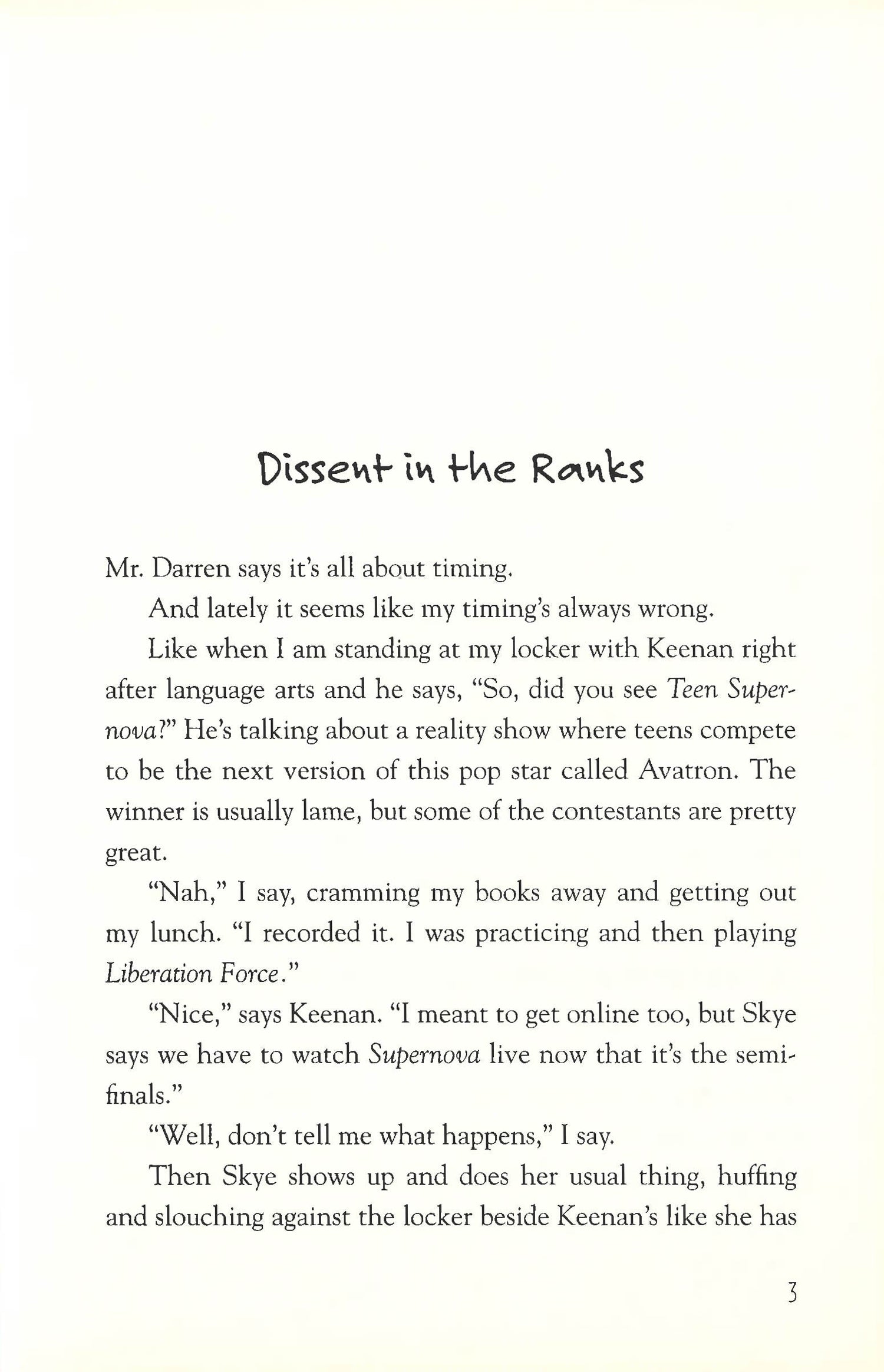 When Anthony's angst-ridden rock 'n' roll lyrics go viral, he's unwittingly cast as the school rebel. The truth is, he's not trying to be anyone's hero. Anthony Castillo needs a new life. His teachers are clueless autocrats except for Mr. Darren, who's in charge of the rock band program. The girls at school are either shallow cutebots or out of his league. And his parents mean well, but they just make things worse. It's as if Anthony is stuck on the bottom level of his favorite video game, Liberation Force 4.5. Except there is no secret escape tunnel and definitely no cheat code. Fed up, pissed off, and feeling trapped, Anthony writes his first song for his rock band, the Rusty Soles. His only problem: Arts Night. If he exercises his right to free speech and sings his original lyrics--where his own bombs will drop--he and his band will be through. The clock is ticking. Time for Anthony to pick his battles and decide what's really worth fighting for.