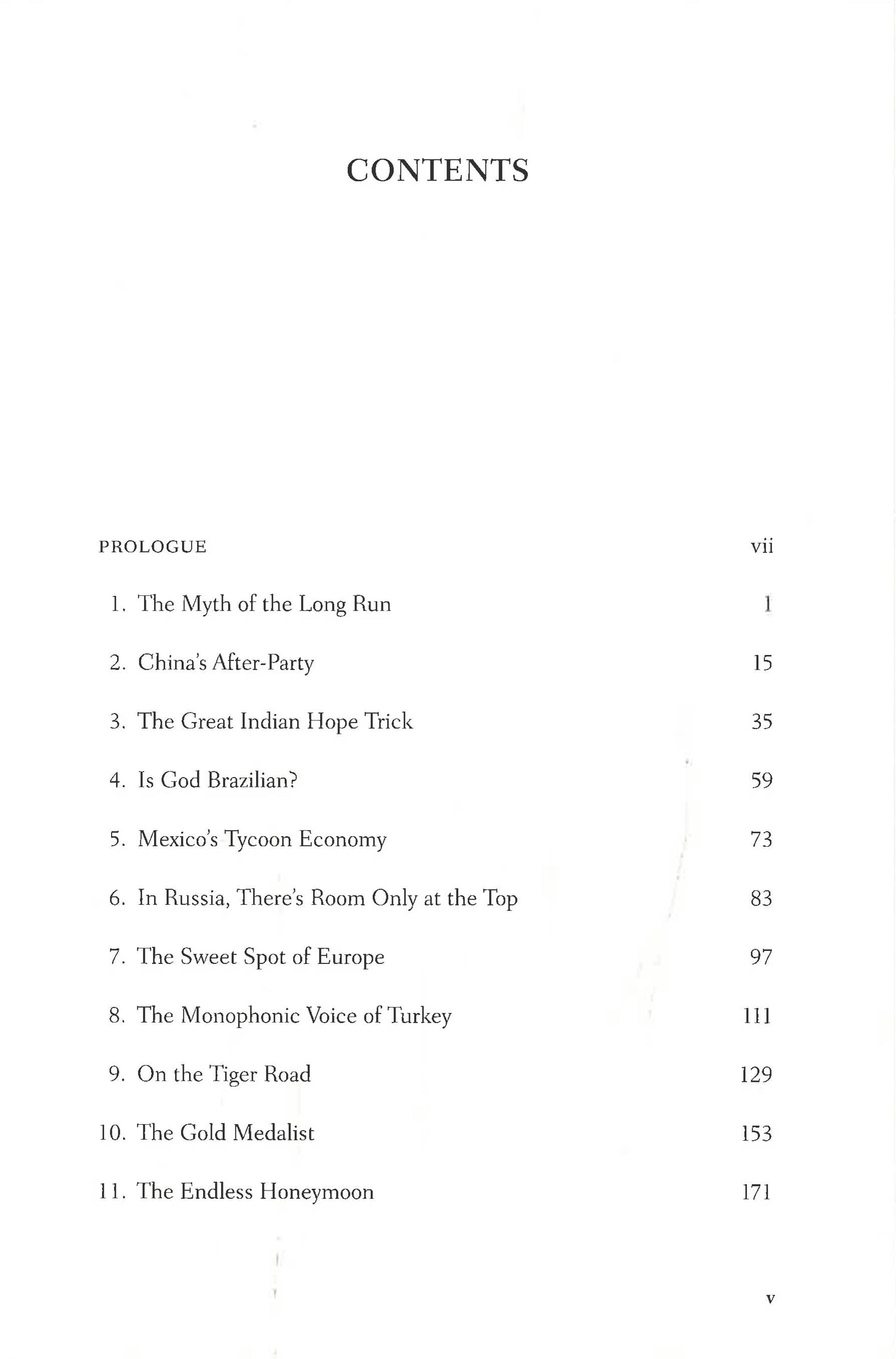 After two decades spent traveling the globe tracking the progress of developing countries, Sharma has produced a book full of surprises: why the overpriced cocktails in Rio are a sign of revival in Detroit; how the threat of the "population bomb" came to be seen as a competitive advantage; how an industrial revolution in Asia is redefining what manufacturing can do for a modern economy; and how the coming shakeout in the big emerging markets could shift the spotlight back to the West, especially American technology and German manufacturing.