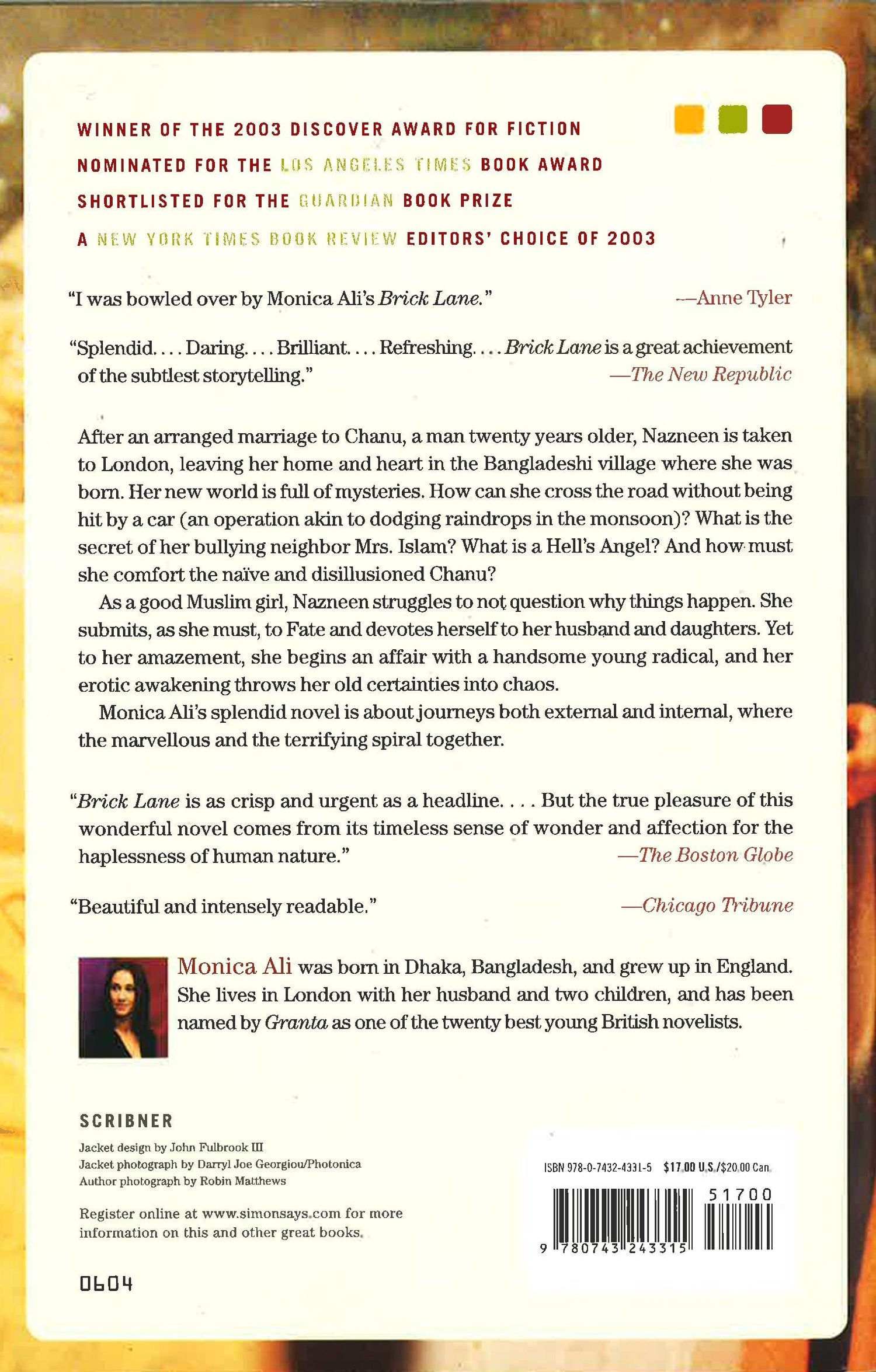 Vivid, profoundly humane, and beautifully rendered, Brick Lane captures a world at once unimaginable and achingly familiar. And it establishes Monica Ali as a thrilling new voice in fiction.