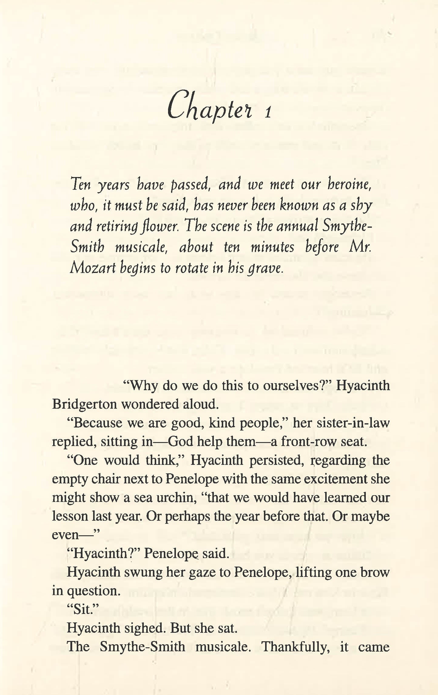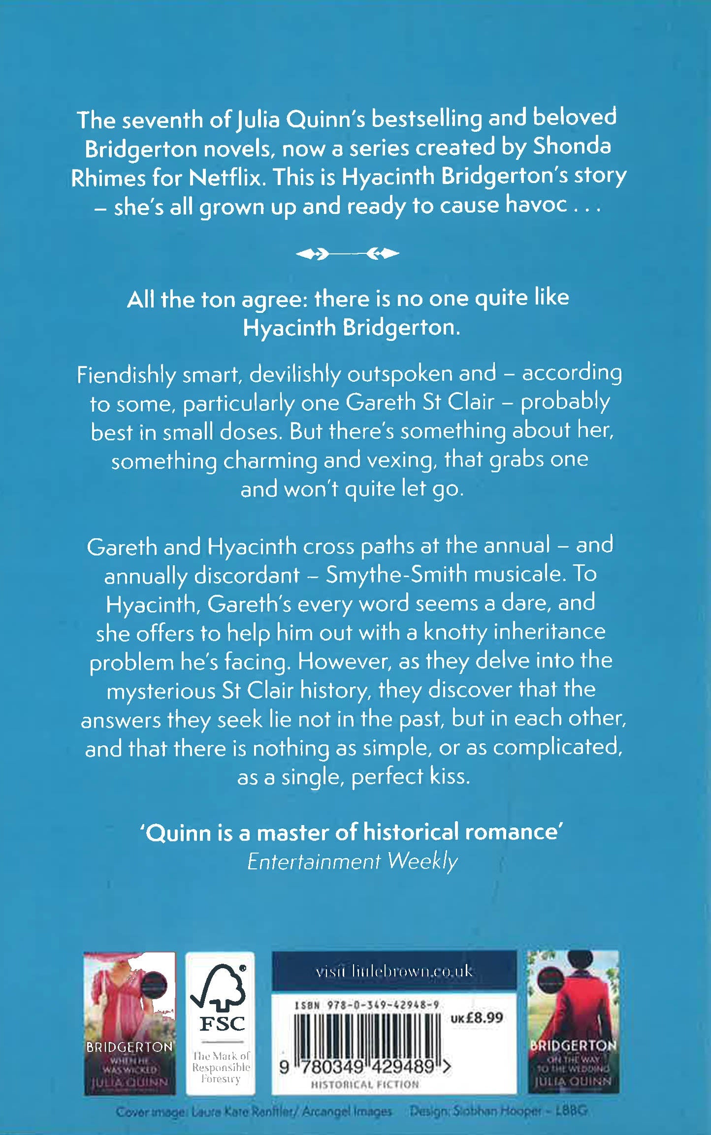 All the ton agreed: there was no one quite like Hyacinth Bridgerton. She’s fiendishly smart, devilishly outspoken, and according to Gareth, probably best in small doses. But there’s something about her—something charming and vexing—that grabs him and won’t quite let go . . .