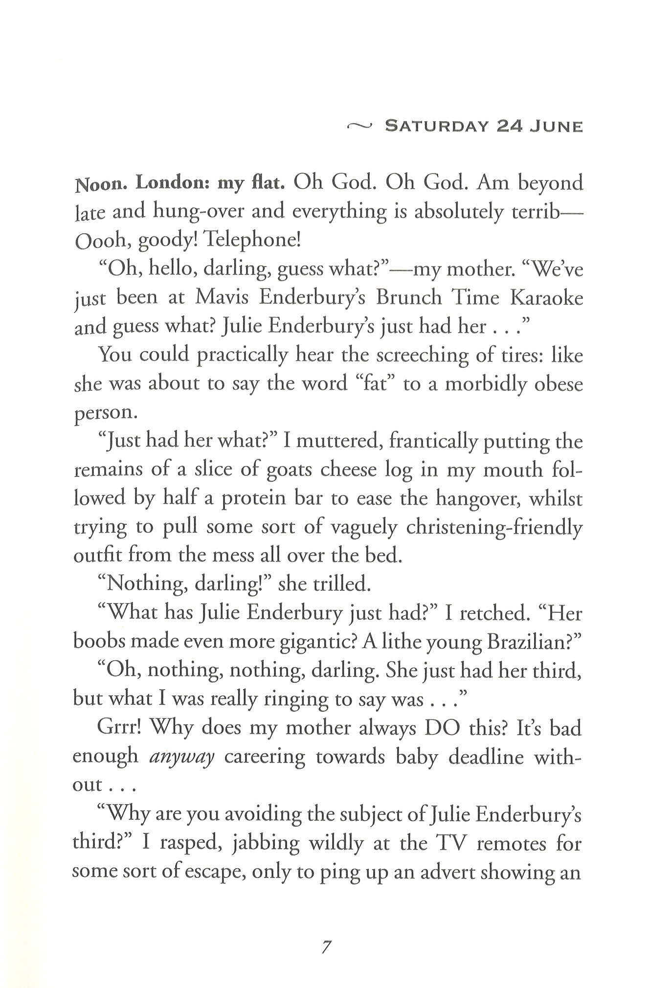 Before motherhood, before marriage, Bridget, with biological clock ticking very, very loudly, finds herself unexpectedly pregnant at the eleventh hour: a joyful time nonetheless dominated by a crucial and terribly awkward question which of her ex-boyfriends is the father? Mark Darcy: honorable, decent, notable human rights lawyer? Or the incorrigible Daniel Cleaver: charming, witty, notorious ladies' man? In this page-turning tale of baby-deadline panic, maternal bliss, and social, professional, technological, culinary and childbirth chaos, Bridget navigates a pregnancy full of cheesy potatoes, outlandish advice from Smug Mothers, chaos at scans and childbirth classes, high jinks and romance. * This book may have reminder mark*