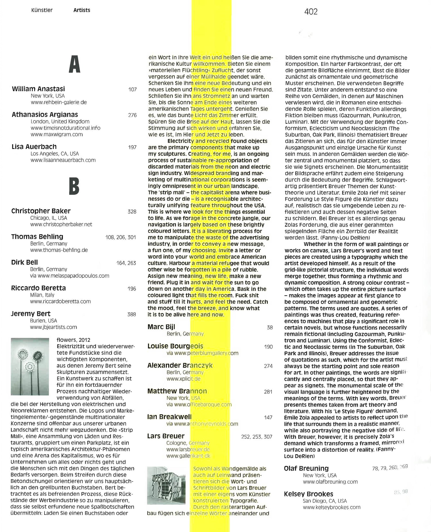"Typography for many artists is loaded with creative potential. How much power of expression is contained in a letter, a word, or a sentence, when these entities, which are very communicative in character to begin with, are put on stage as images and objects? How does typographical information respond to its environment, to graphic complements, abstraction, or visual reversal? Under the curatorship of Slanted, bright!" presents a collection of pictorial typo-art, focusing on moving ahead. The differentiated spectrum, ranging from culturally rooted to revolutionary and innovative positions, does not leave out any sphere of interest: handpainted signs, tape-art, woodtype, letter objects, typographic sculptures, graffiti, tattoo art, generative performances, experimental type, and much more. More than 300 entries