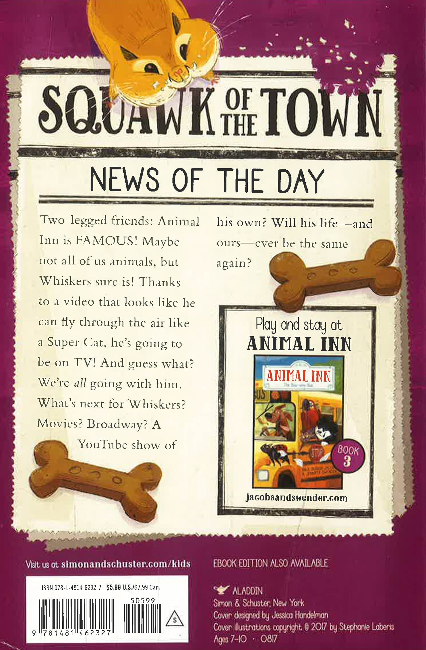 Whiskers goes viral in this fourth zany novel in a chapter book series where the fur--and fun--flies at an animal spa and hotel. The Animal Inn is an all-inclusive pet resort/hotel/center/spa for animals from dogs to rabbits, cats to ducks, parrots to lizards. From doggie and kitty daycare, to grooming, and group play--you name it, and the Animal Inn has it. The Inn is run by the Tyler family along with their pets Leopold, the Macaw; Fuzzy and Furry, the gerbils; dogs Dash and Coco; felines Shadow and Whiskers; and a rollicking horde of animal visitors. When Whiskers becomes an unexpected internet star after a hilarious post becomes an online sensation, Whiskers and the Tylers are invited to NYC for a morning TV show interview. The Tylers rent an RV and take the whole family for the fur-tastic experience. Even though Whiskers is a bit full of himself with his newly found internet fame, he's also super nervous! Will his fame translate to the TV screen--or is he destined to stay a meme forever?