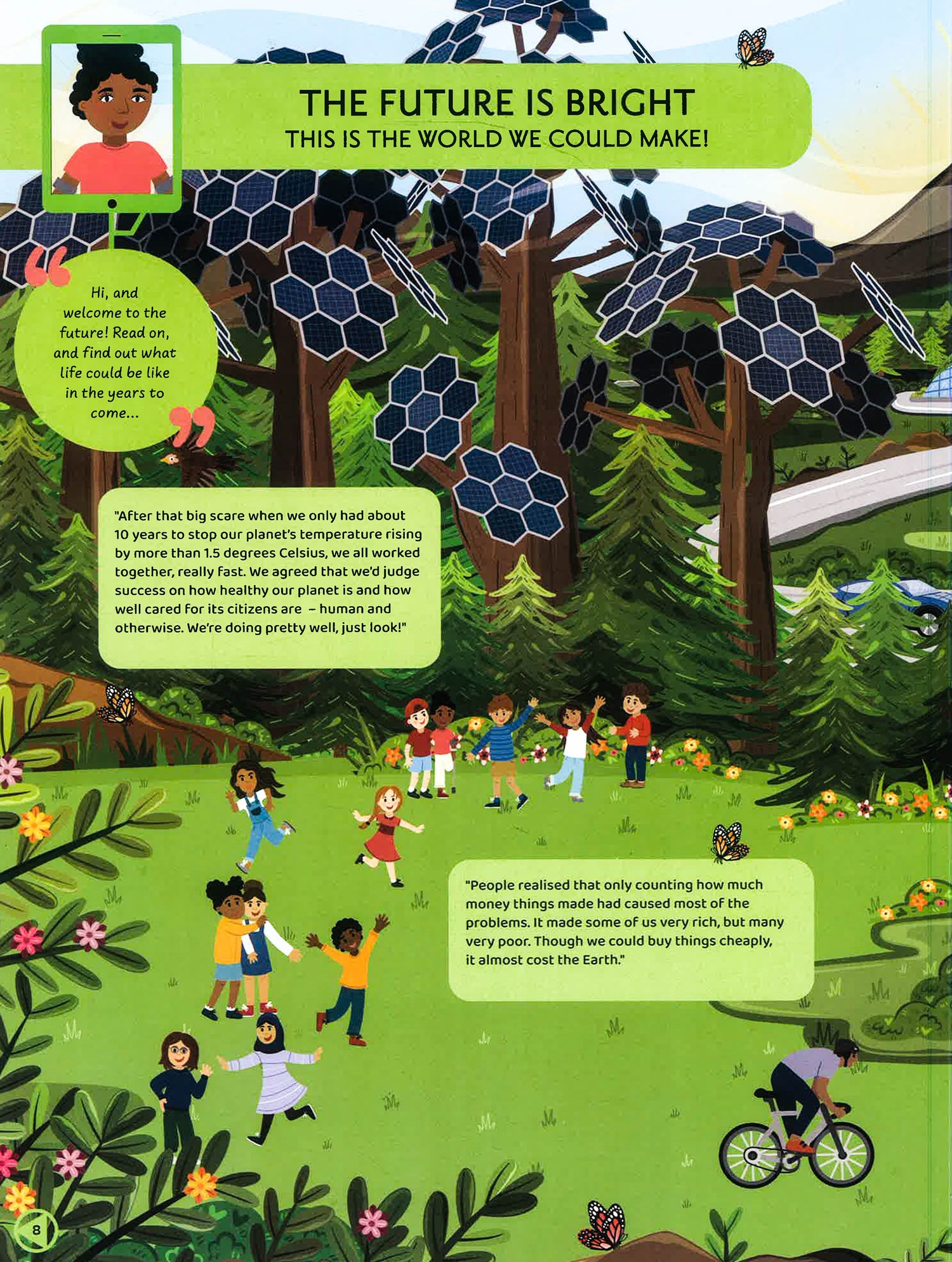 A new take on environmental and social awareness that focuses on the amazing possible future rather than just the negatives, in order to inspire children to take action against climate change, poverty, inequality and pollution.