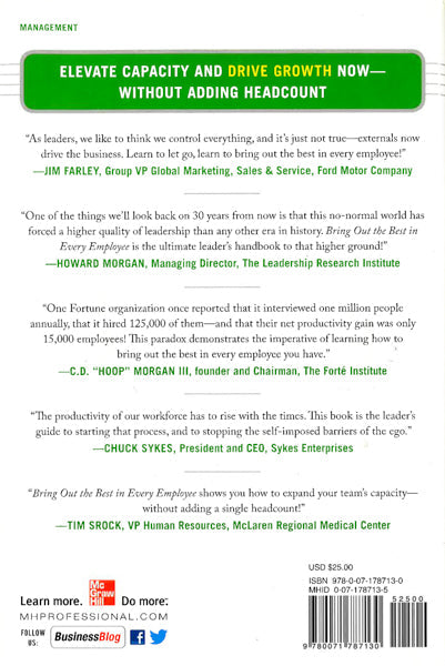 Elevate Capacity AND Drive Growth Now--Without Adding Headcount Management"As leaders, we like to think we control everything, and it's just not true--externals now drive the business. Learn to let go, learn to bring out the best in every employee!" -- Jim Farley, Group VP Global Marketing, Sales & Service, Ford Motor Company"One of the things we'll look back on 30 years from now is that this no-normal world has forced a higher quality of leadership than any other era in history. Bring Out the Best in Every Employee is the ultimate leader's handbook to that higher ground!" -- Howard Morgan, Managing Director, The Leadership Research Institute"One Fortune organization once reported that it interviewed one million people annually, that it hired 125,000 of them--and that their net productivity gain was only 15,000 employees! This paradox demonstrates the imperative of learning how to bring out the best in every employee you have." -- C.D. "Hoop" Morgan III, founder and Chairman, The Forte Institute"The productivity of our workforce has to rise with the times. This book is the leader's guide to starting that process, and to stopping the self-imposed barriers of the ego." -- Chuck Sykes, President and CEO , Sykes Enterprises"Bring Out the Best in Every Employee shows you how to expand your team's capacity--without adding a single headcount!" -- Tim Srock, VP Human Resources, McLaren Regional Medical CenterAre You Capturing the Full Potential of Your Workforce?With employee dissatisfaction at an all-time high and job security more tenuous than ever, today's managers arescrambling to motivate their teams, often at great cost. If you're like most, it has been next to impossible to elevate capacity without increasing headcount--until now.Workplace performance experts Don Brown and Bill Hawkins have created a revolutionary approach to energizing your team.Now you can drive growth--by targeting and empowering the right people. Bring Out the Best in Every Employee shows you exactly how to leverage the untapped asset that's already on your payroll. The fact is, most managers devote so much time to either high-potential or high-problem employees that they neglect the critical mass at the top of the bell curve. And they can mean the difference between surviving . . . and thriving.This is an essential road map for any manager who wants to:Identify and target the "core" of his or her teamDiscover what the "silent majority" of the workforce actually wantsCreate a personal, actionable engagement plan for every employeeMaster the techniques to develop the capacity of "Solid Citizens"Most important, you'll learn what drives today's workforce . . . and what employees want from you in order to perform. By surveying more than 6,000 workers around the world, the authors identified what to stop, start, andcontinue doing to increase your return-on-leadership. Get yourself ready for honest--and sometimes shocking--feedback. Their findings will astound you and broaden youreffectiveness exponentially.