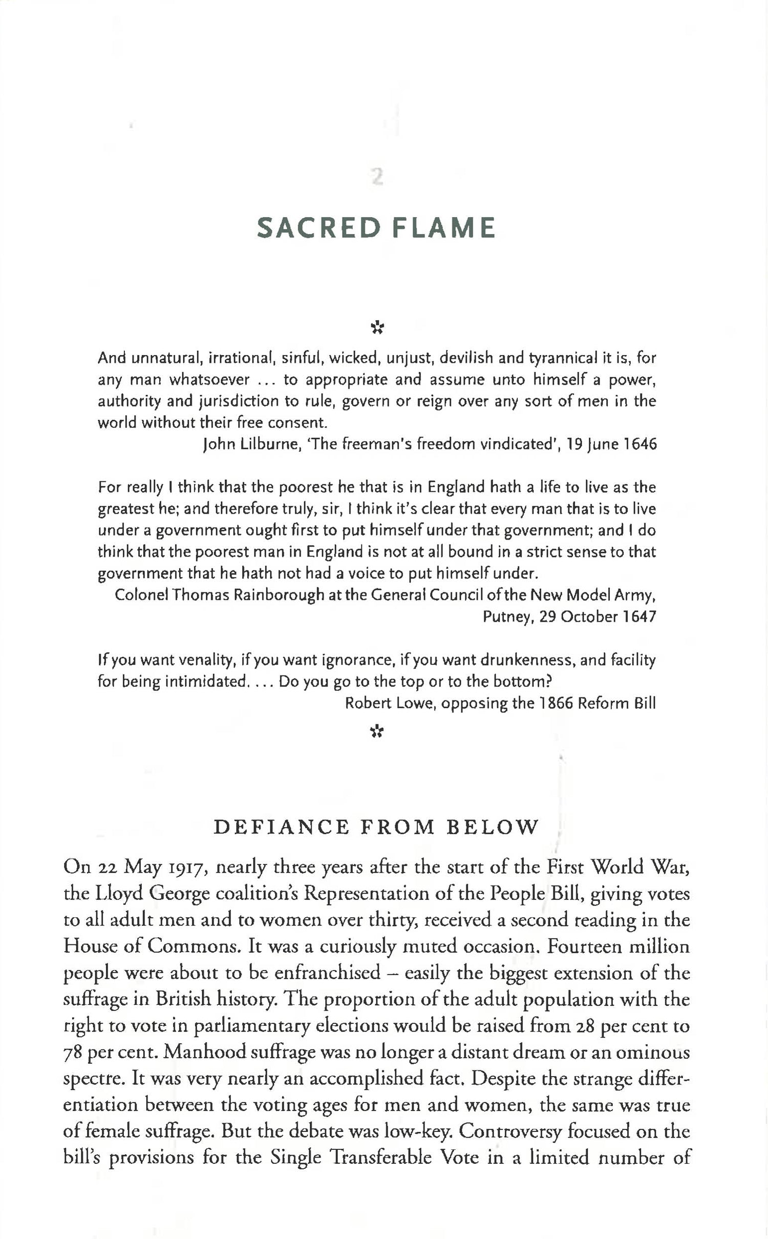 The history of democratic politics in Britain since the coming of universal male suffrage in 1918 is a dramatic one, crowded with events and colourful figures. As well as the great events of war and economic crises, and the quieter drama of constitutional change, this era has been studded with democratic protests of every sort. The story opens more than 350 years ago. The Levellers of the 17th century, 18th-century radicals, the Chartists and the Reform Acts are all part of the unsteady and fiercely contested progress towards a democratic constitution. Dreams, visions and ideals are important too - of George Orwell, and Enoch Powell, Milton, Thomas Paine and Edmund Burke, Churchill and Lord Salisbury, Aneurin Bevan and Tony Benn - for they have also shaped our outlook.