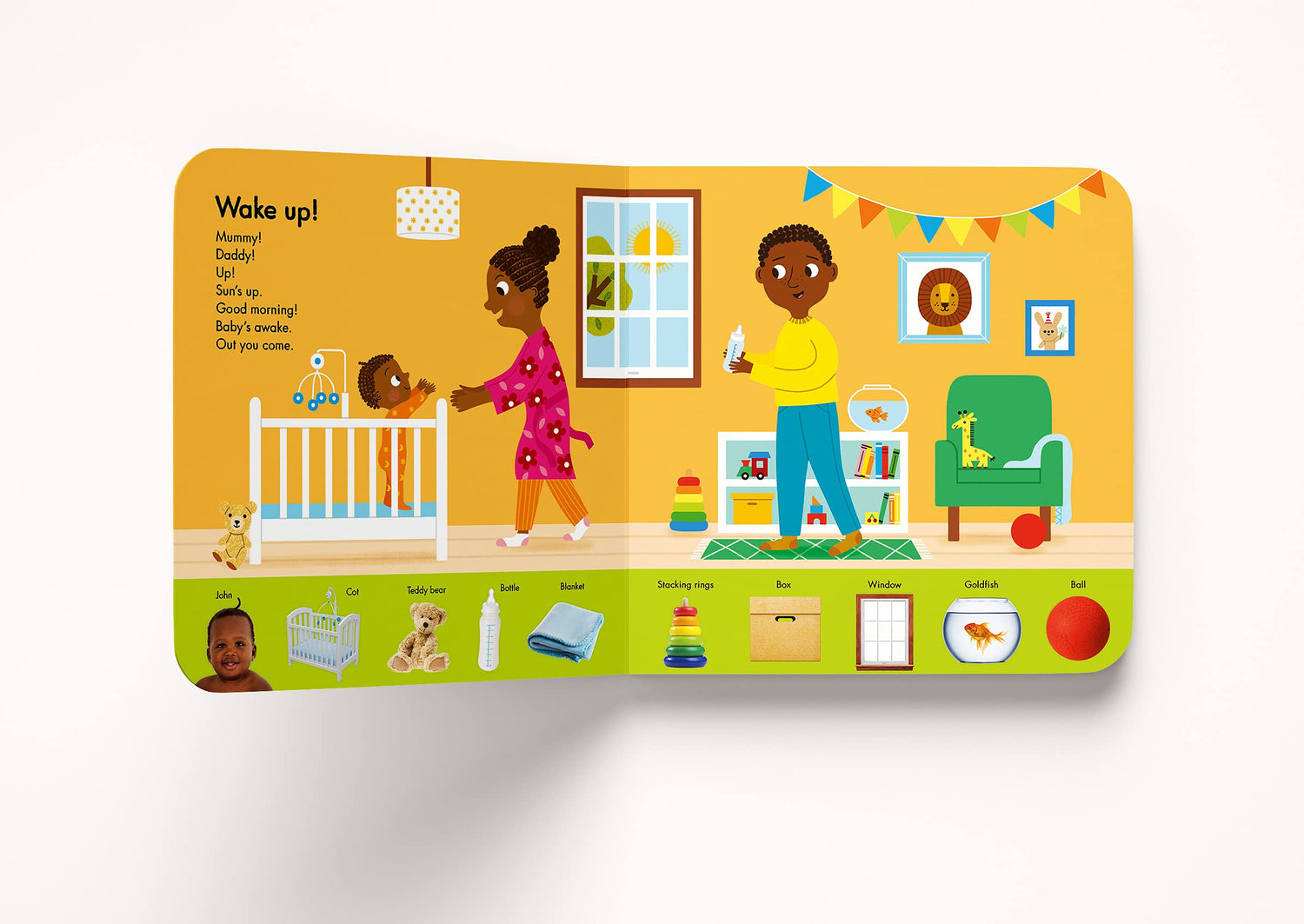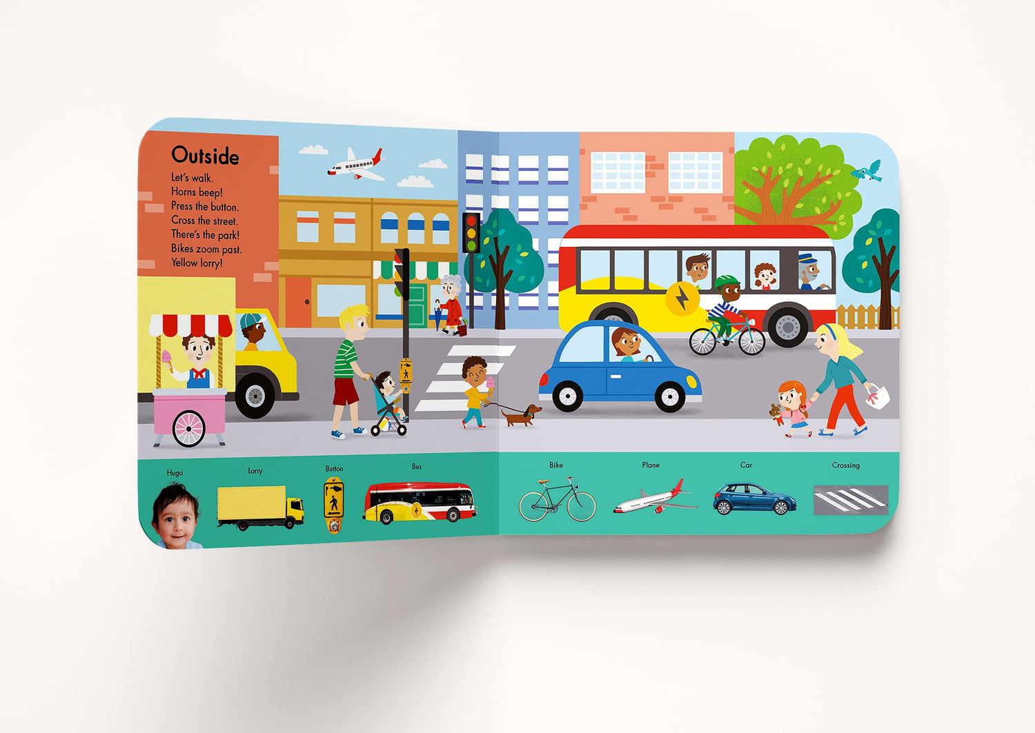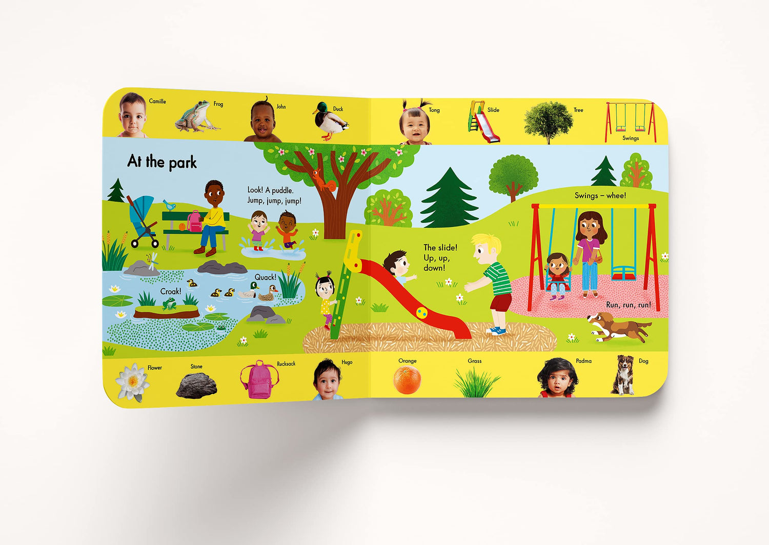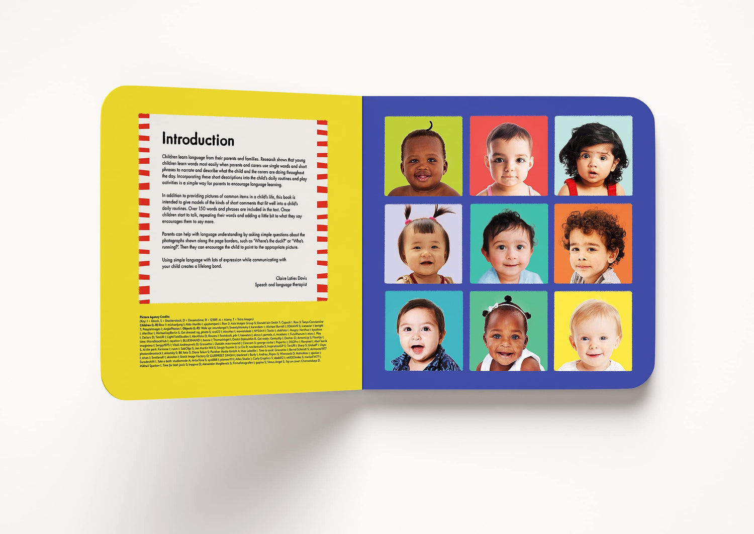 Take a trip around the world by following nine babies through their daily routines. Under speech and language therapist Claire Laties Davis’s sure hand, dressing, mealtime, playtime, bath time and more become opportunities for babies to learn new words and phrases. Each illustrated spread also includes photographs of babies and everyday objects drawn into the art – creating a search-and-find on every page to allow more time for parents and babies to connect.