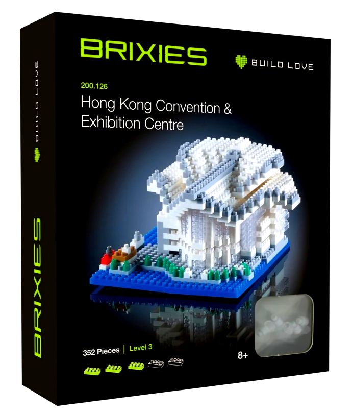 The "BRIXIES Hong Kong Convention & Exhibition Center" set consists of a total of 352 stones and, when assembled, is 9.5 cm long, 9.5 cm wide and 6.2 cm high. The BRIXIES building block sets are suitable for ages 8 and up. The building blocks are made of high-quality ABS plastic and meet the latest safety standards. This level 3 kit promotes skill and concentration while also being a lot of fun.